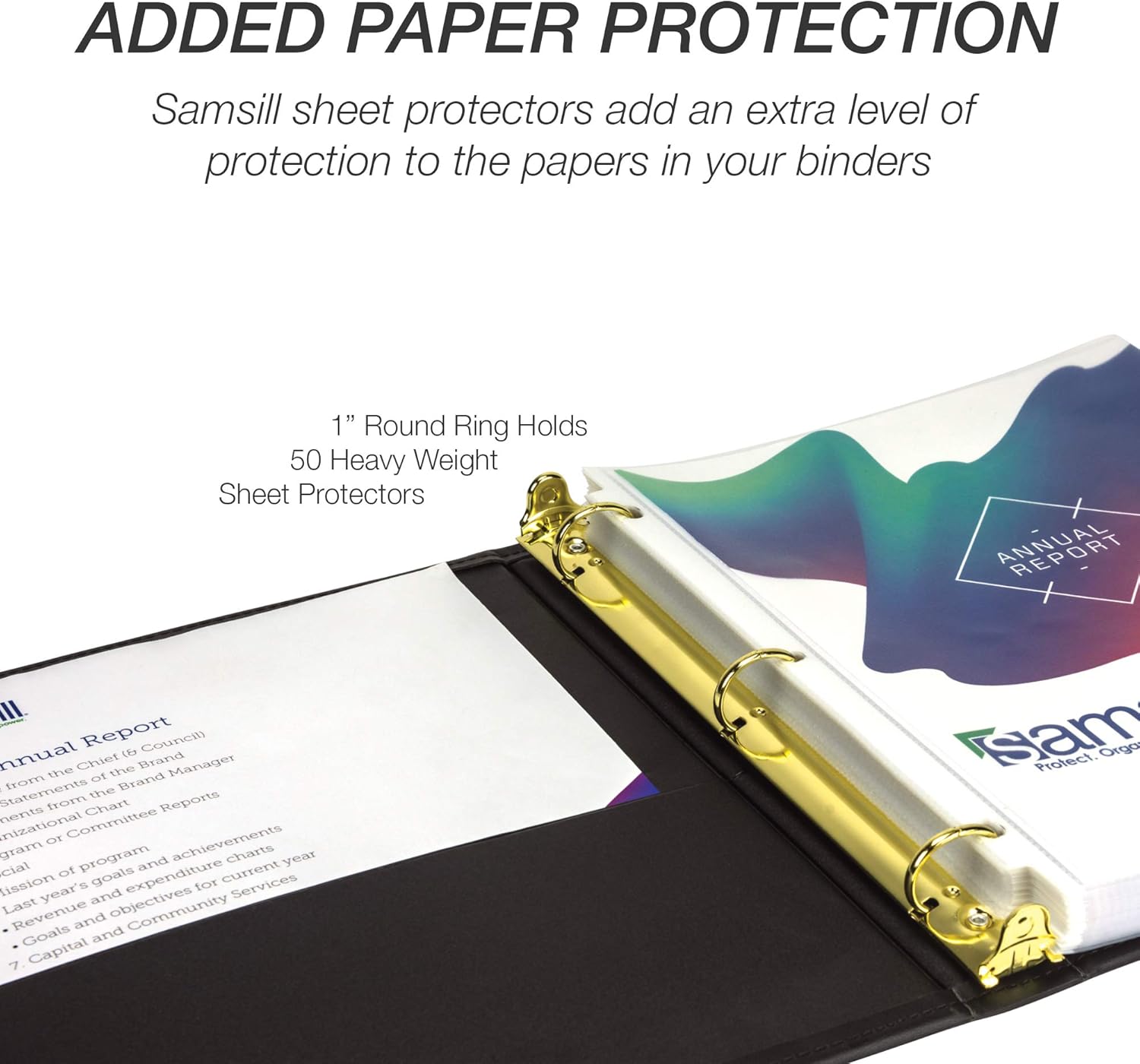Samsill Leather Binder, Classic Collection, 3 Ring, Executive Presentation Portfolio, 1 Inch (Holds 200 Sheets), Brass Round Ring, Black