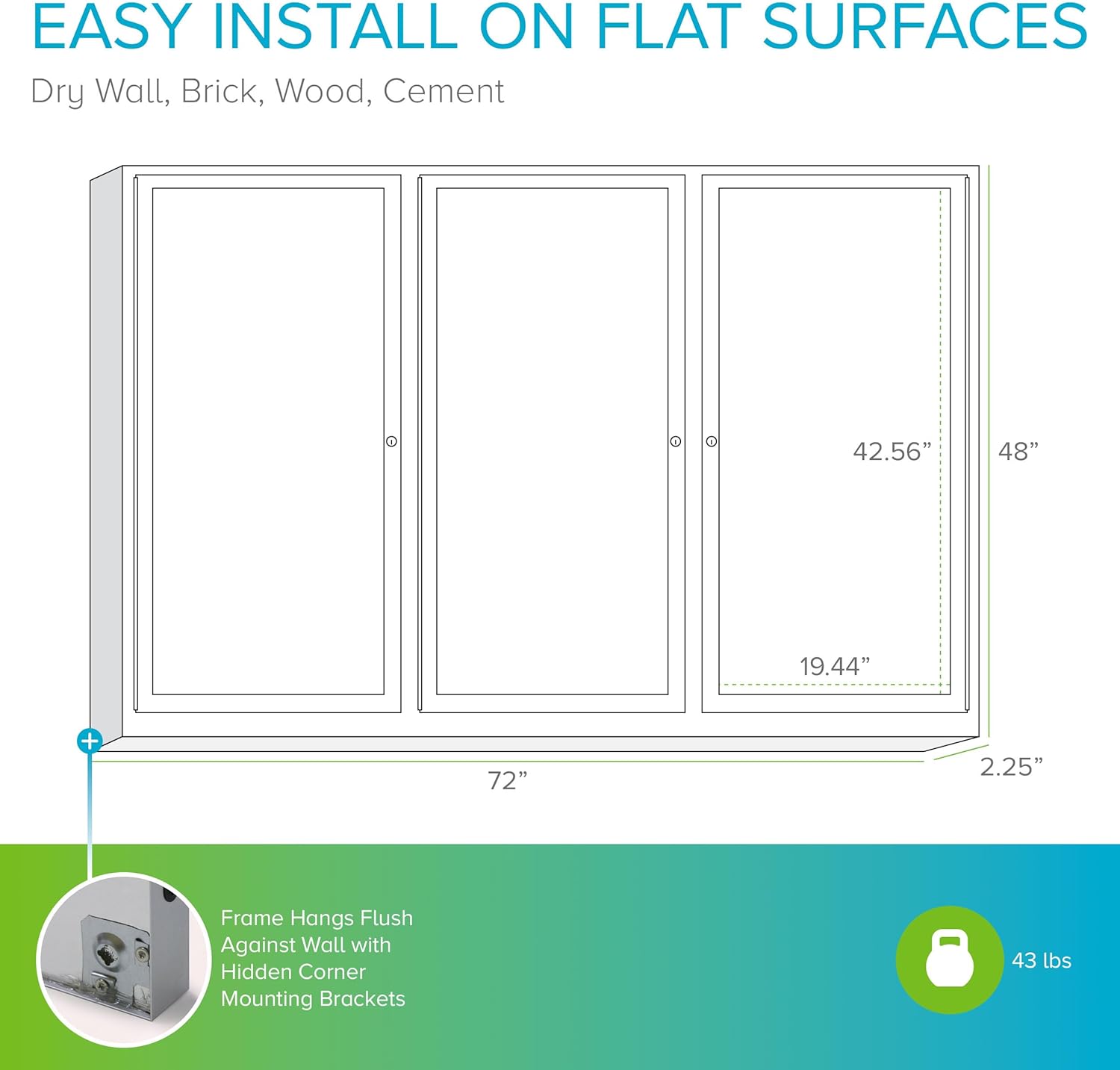 - Concealed corner brackets allow for easy and secure mounting.