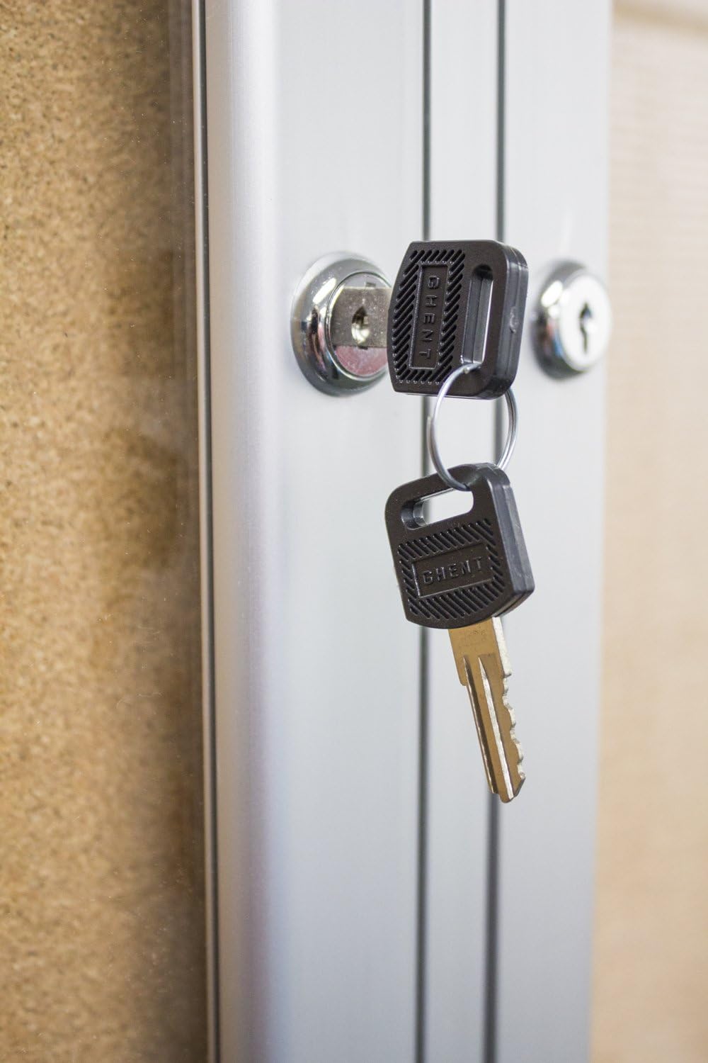 Ghent 48"x72" 3-Door indoor Enclosed Bulletin Board , Shatter Resistant, with Lock, Satin Aluminum Frame Natural Cork (PA34872K) Made in the USA
