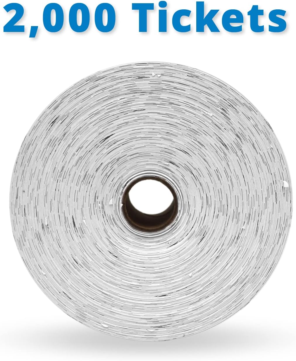 INDIANA TICKET CO. 2,000 White Raffle Tickets Double Roll, Premium Quality 50/50 Raffle Tickets, Tickets for Events, Carnivals, Door Prizes, Drinks and More (2,000, White)