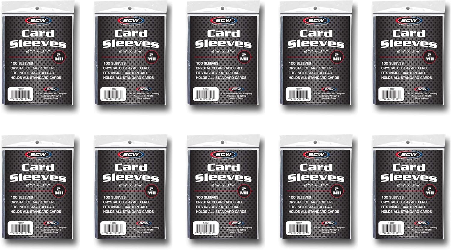 BCW Standard Card Sleeves - Penny Sleeves 2 5/8 x 3 5/8 | 1000 Clear Trading Card Sleeves | Card Protector Sleeves for Baseball, Sports & Trading Cards | 10 Packs of 100 Each