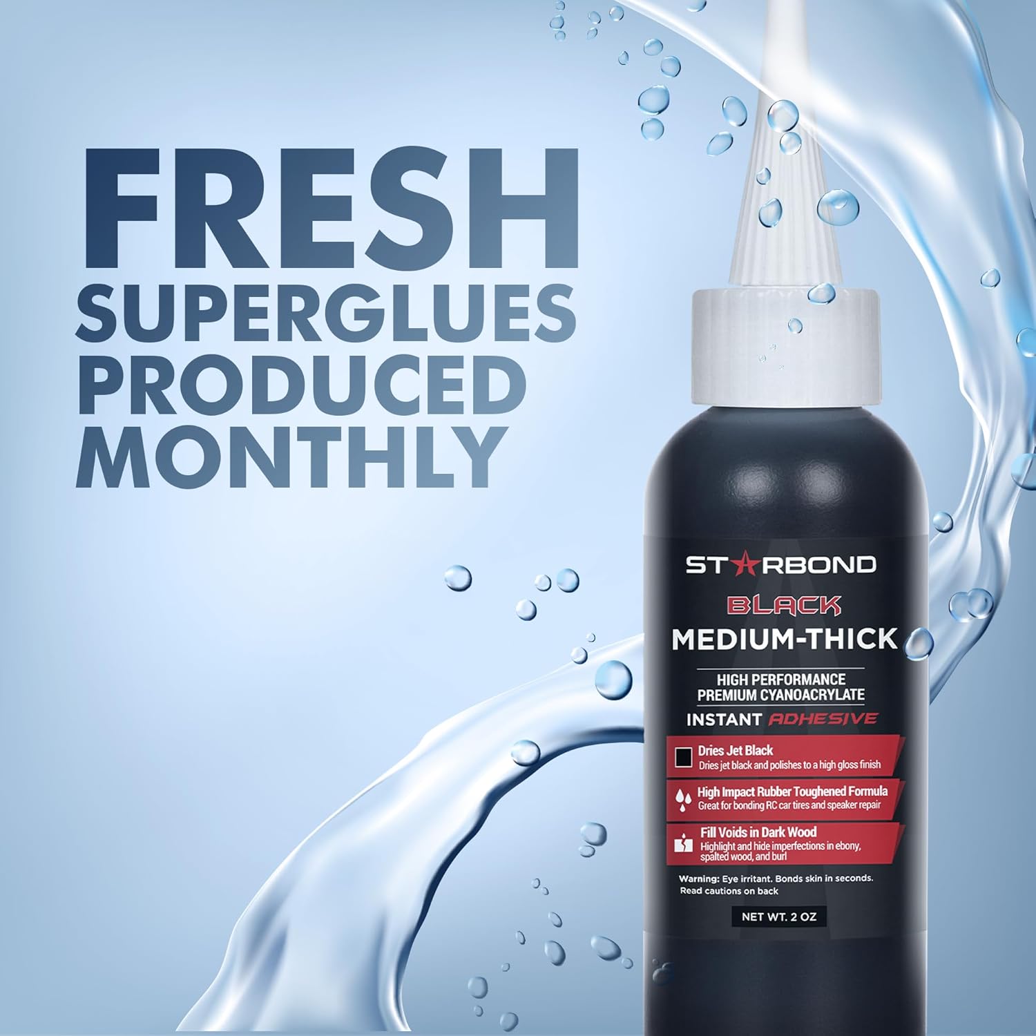 - ✅ PREMIUM CYANOACRYLATE SUPER GLUE - LAB TESTED FOR OPTIMAL PERFORMANCE: High performance industrial grade adhesive. Starbond Black Medium Thick CA is used to bond parts, with focus on impact and shock absorbance qualities