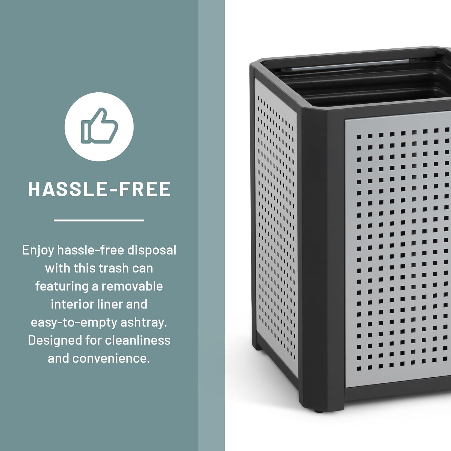 Safco Evos Steel Trash Can, 15 Gallons, Indoor and Outdoor Use, Heavy Duty Garbage Can with Plastic Liner and Ashtray