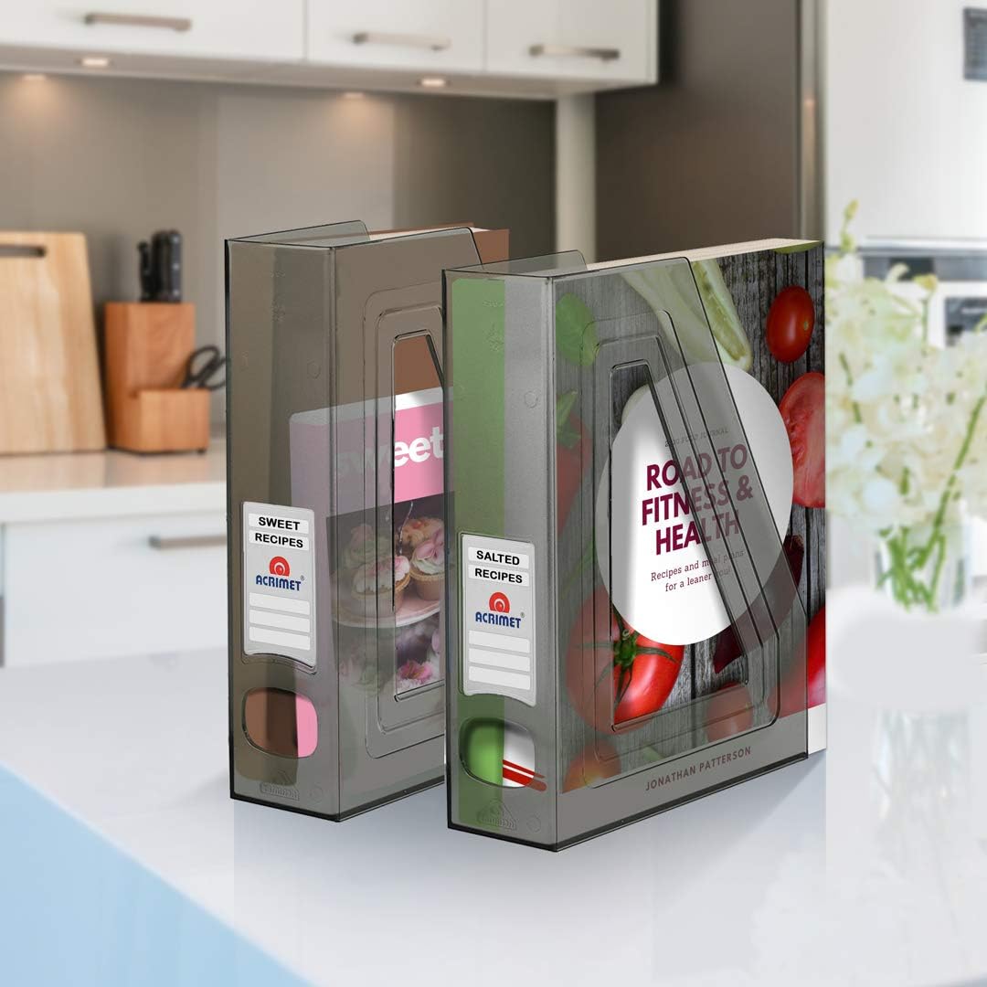 Acrimet Magazine File Holder, Durable Rack, Space-Saving Organizer (Plastic) (Smoke Color) (2 pack)