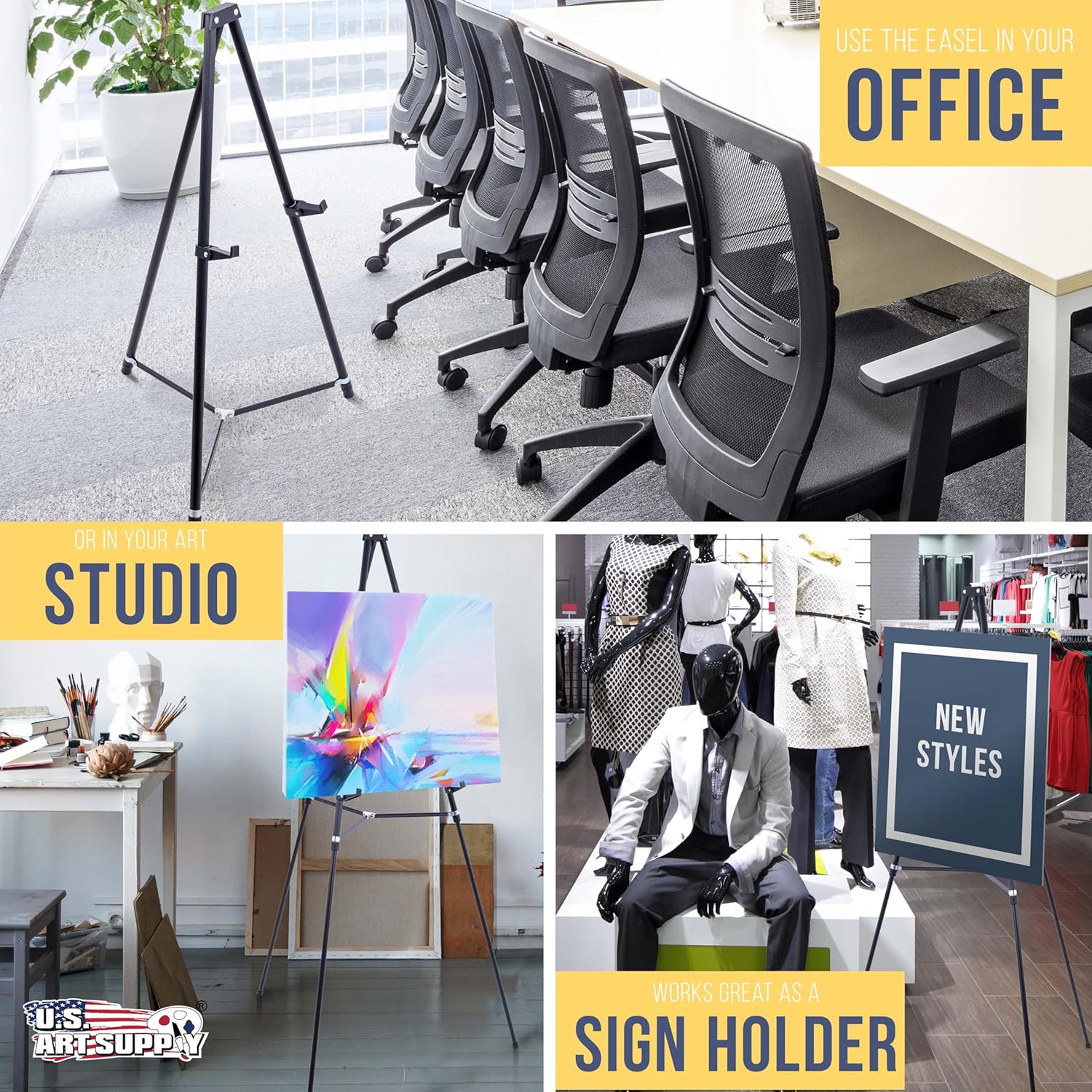- Multiple Applications: Ideal poster stand for 24x36 signs, artwork, welcome signs, canvas, whiteboard displays, and picture frames; Frequently used as sign easel at weddings, retail displays, and corporate events