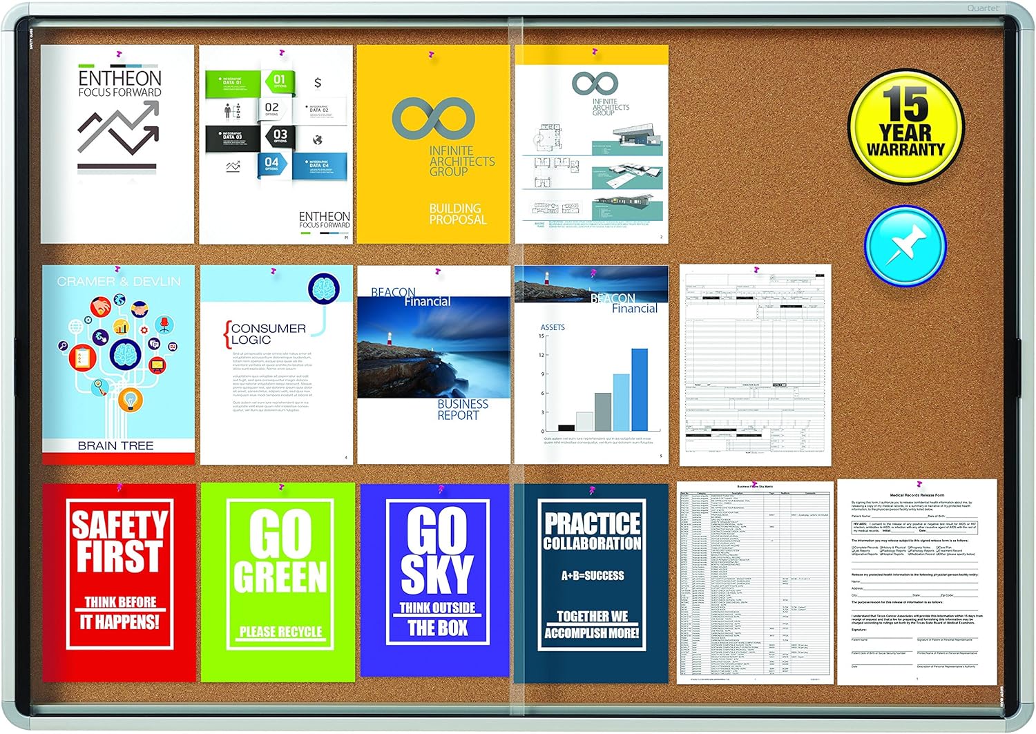 Quartet Enclosed Cork Bulletin Board, 56" x 39" or 18 Sheets, 2 Sliding Doors, Aluminum Frame (EISC3956)