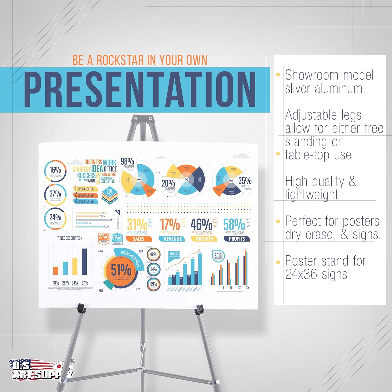 - Multiple Applications: Ideal presentation easel for chart paper stand, office meetings, classroom instruction, trade shows, poster displays; Excellent for easel pads, flip chart paper, dry erase boards, and store signs