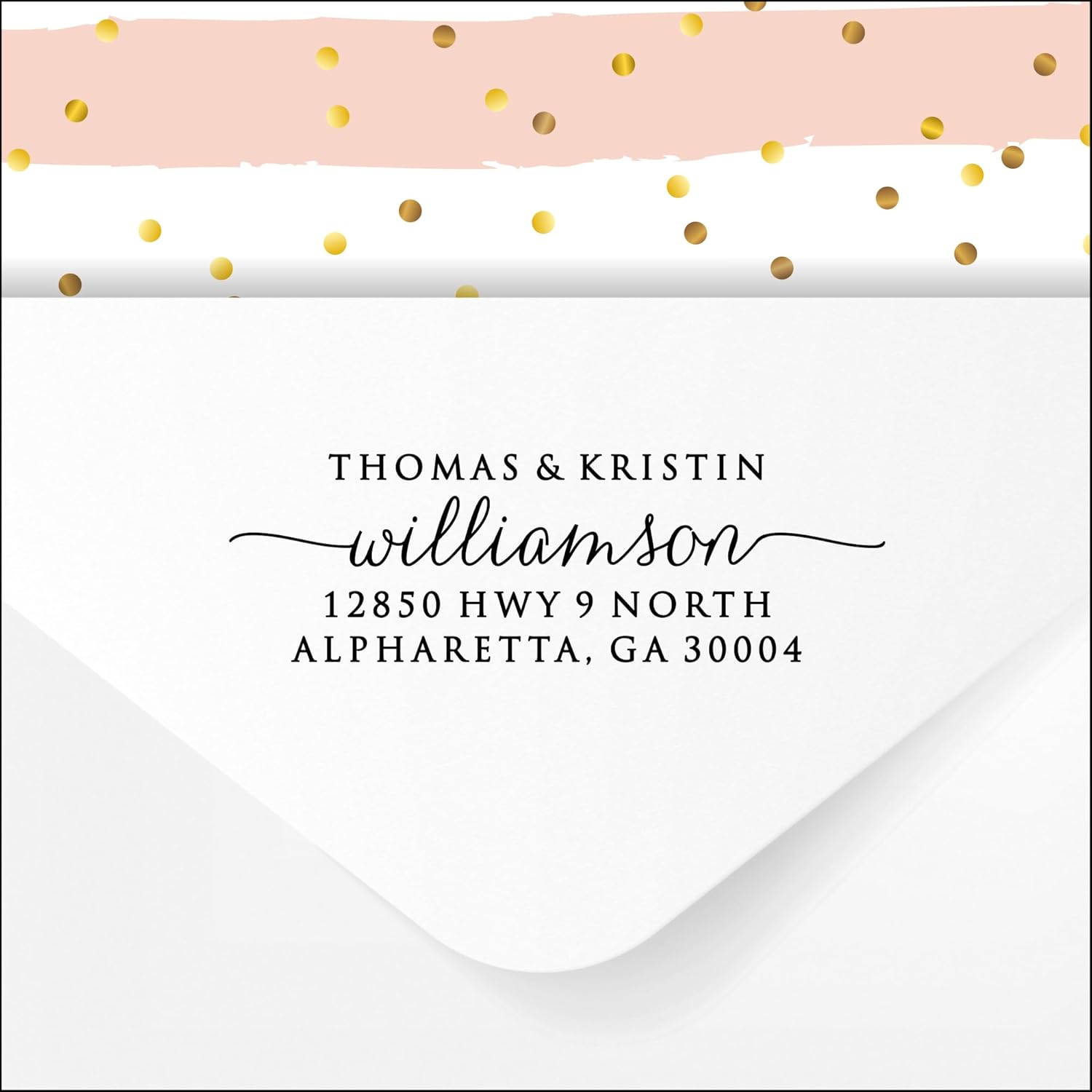 - Easy Customization: Click "Customize Now" to create your personalized return address stamp — professionally formatted for a beautiful finish.