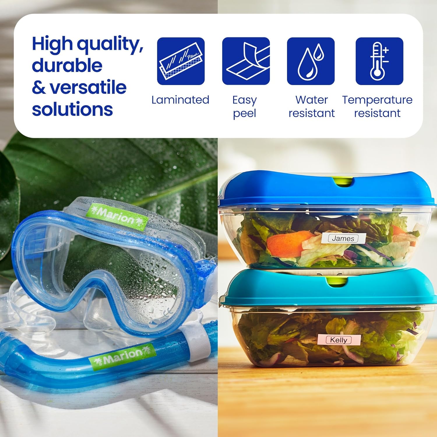 - SECURELY AFFIXES TO MULTIPLE SURFACES: Superior adhesion withstands rigorous use; labels stay put even in dishwasher or microwave; ideal for smooth or textured surfaces