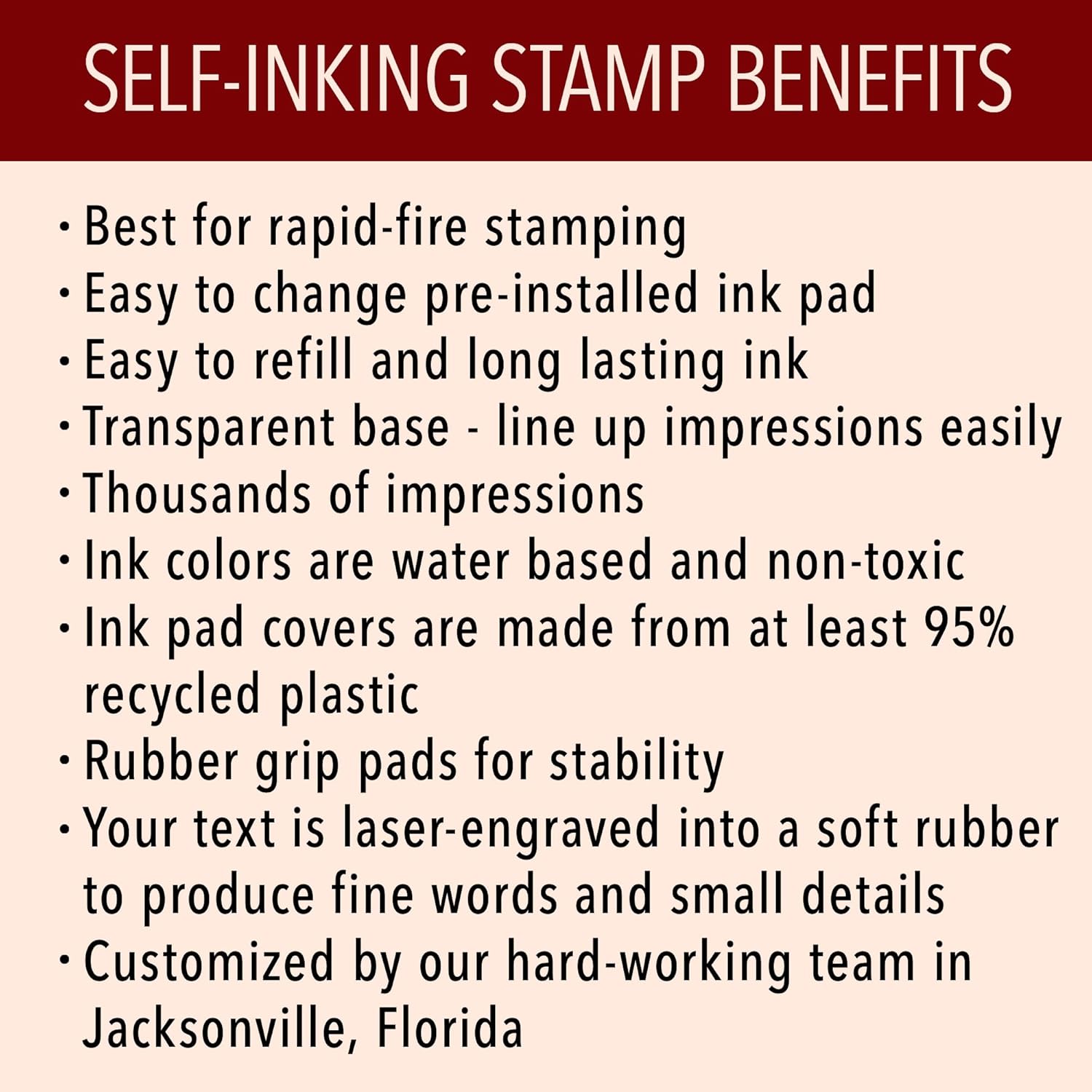 - PRIDE IN WORKMANSHIP: Each stamp/embosser is customized by a dedicated and hard-working team based in the U.S., ensuring that your product receives special attention and care.