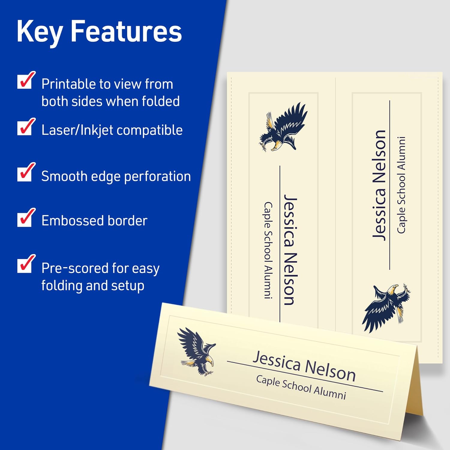Avery Printable Tent Cards, 3.5" x 11", Ivory with Embossed Border, 50 Blank Place Cards for Laser or Inkjet Printers (5915)