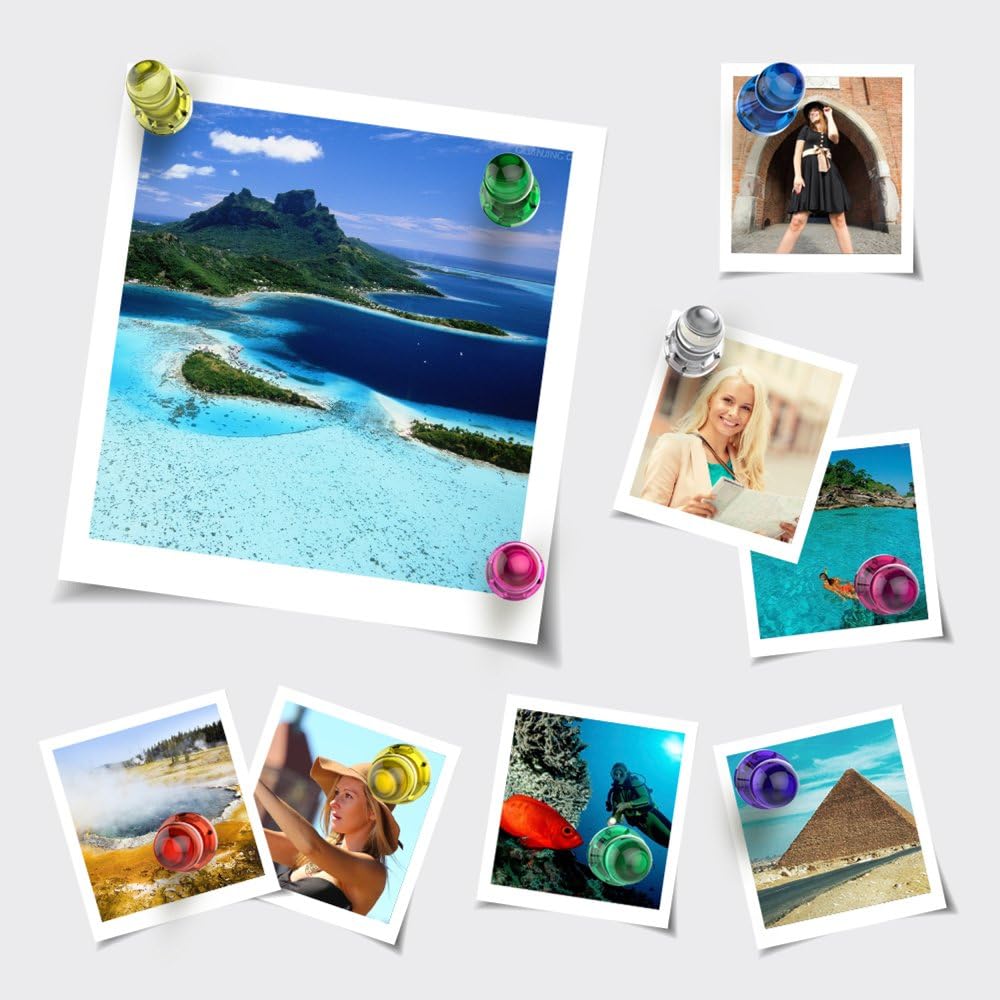 - SMALL STRONG MAGNETS: Each powerful magnet holds up to 11 sheets of paper on any metallic surface. No more sliding papers with cheap magnets. These push pin magnets are tiny too so they won't cover up exact things you want to display.