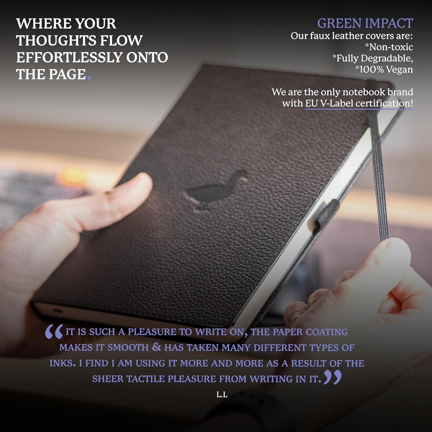 - CRAFTED FOR QUALITY: A hardcover PU vegan leather notebook with micro-perforated cream 100gsm pages. Features an elastic closure, inner pocket, built-in bookmark, and pen holder for organized, convenient, and stylish note-taking anywhere.