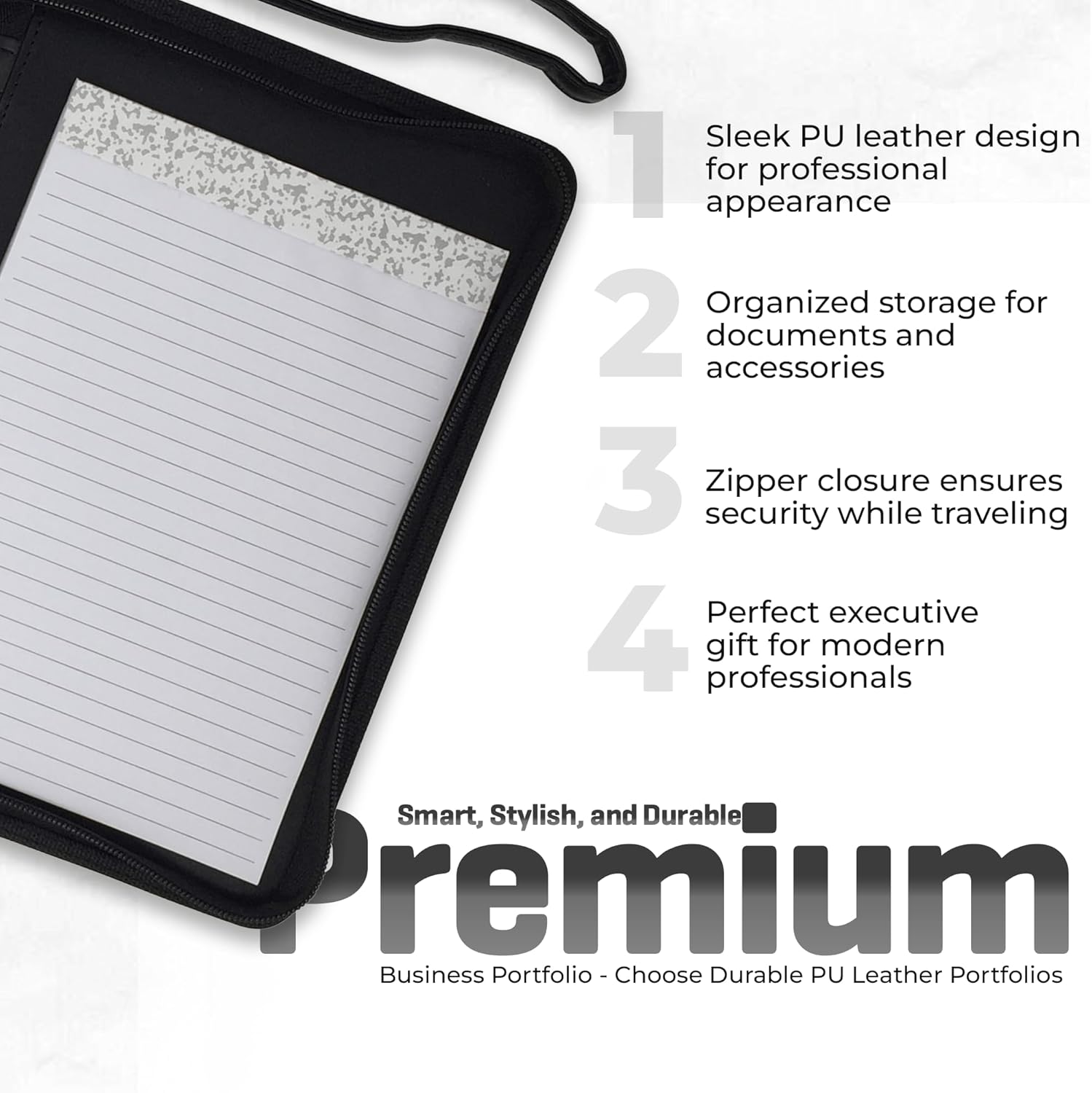 - COMFORTABLE QUALITY - Comfortable & easy to carry all day thanks to the soft but durable Nappa-like PU leather whether you carry this leather portfolio for men or women in your hand or by using the detachable wrist strap (included).