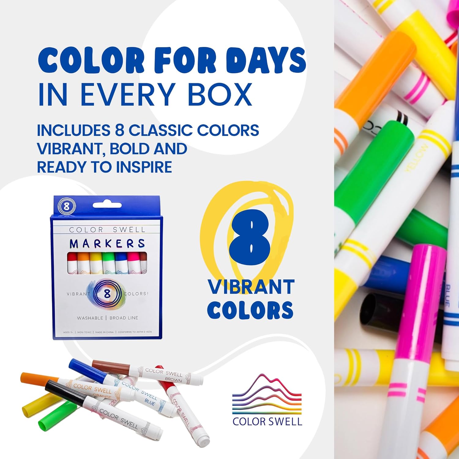 Color Swell Bulk Washable Markers (288 Total) – 36 Packs, 8 Colors per Pack – Ideal for Teachers, Kids, Party Favors, Classrooms, Donations, Students - Broad Line Bulk Markers