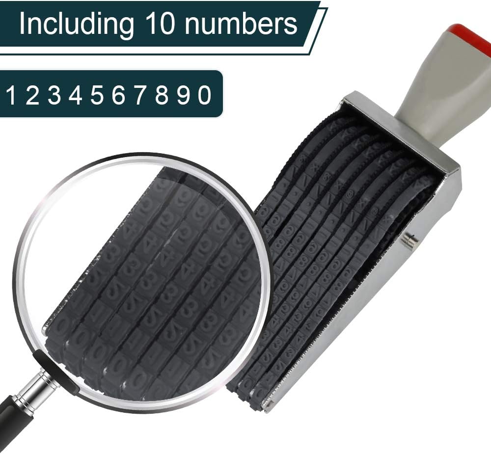 - Each letter is about 0.4x0.5cm(0.16x0.2inch). Turn around the plastic wheel,each belt includes different numbers,letters,punctuation,making it the perfect tool for adding titles or captions.