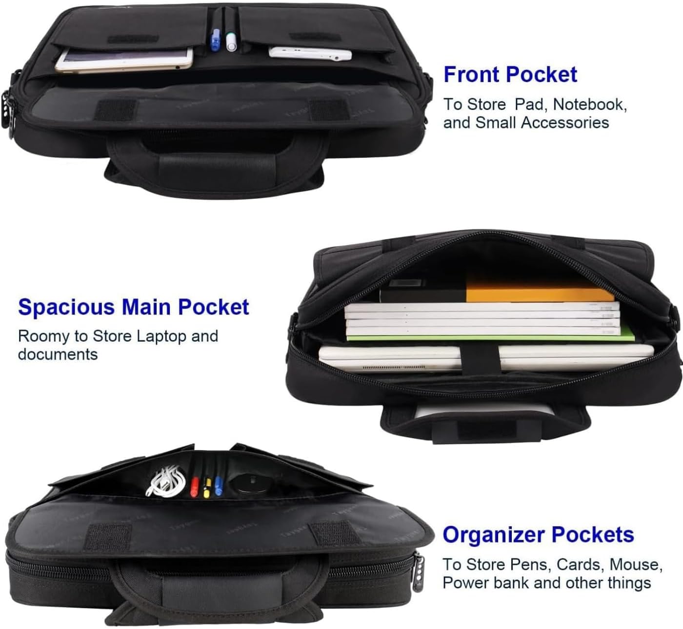 Taygeer Laptop Bag 15.6 Inch, Business Briefcase Gifts for Men Women, Water Resistant Messenger Shoulder Bag with Strap, Premium Office Bag, Carry On Laptop Case for Notebook/Computer/Laptop, Black
