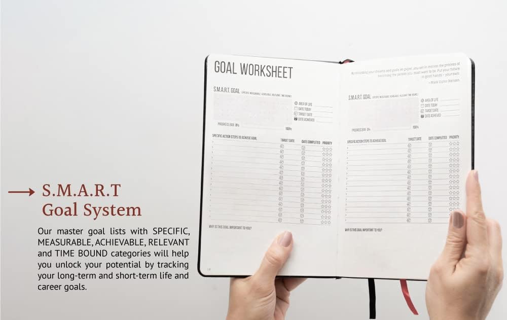 - Smart Goal System: This smart planner is designed to help you balance work, personal, and family commitments using the proven SMART goal system. With a dotted notes section, a master goal list with actionable steps, and a daily schedule from 6 am to 10 pm, this goal-setting journal provides everything you need to stay organized and achieve success