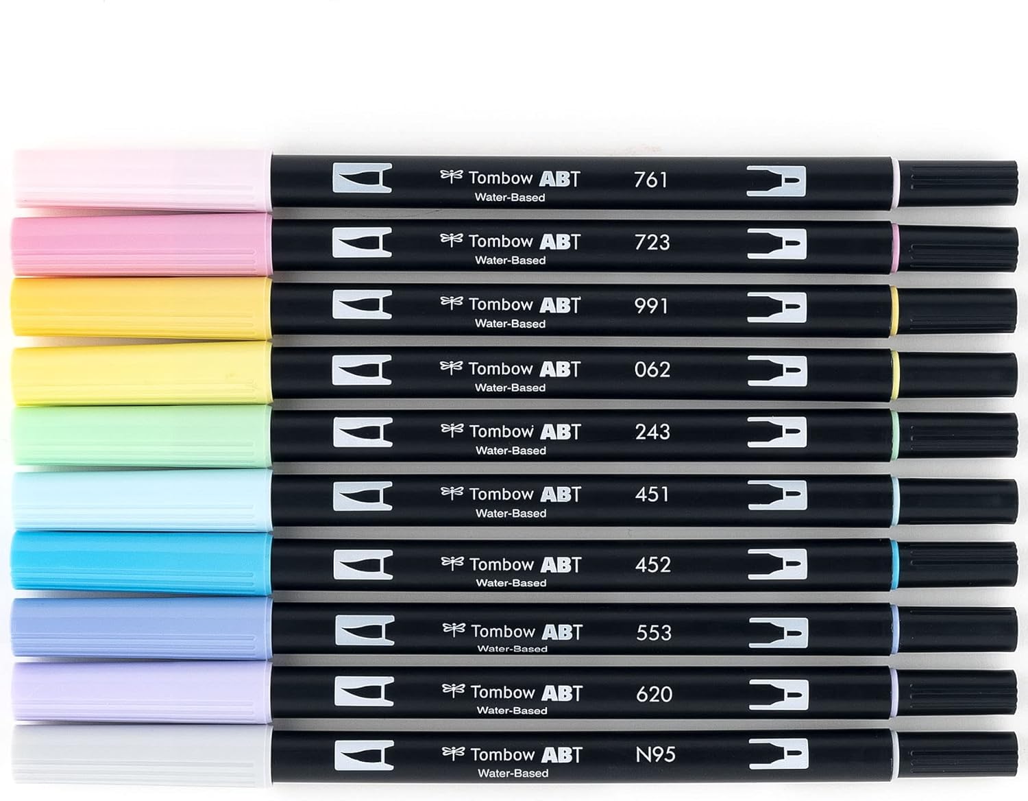 Tombow 56187 Dual Brush Pen Art Markers, Pastel, 10-Pack. Blendable, Brush and Fine Tip Markers