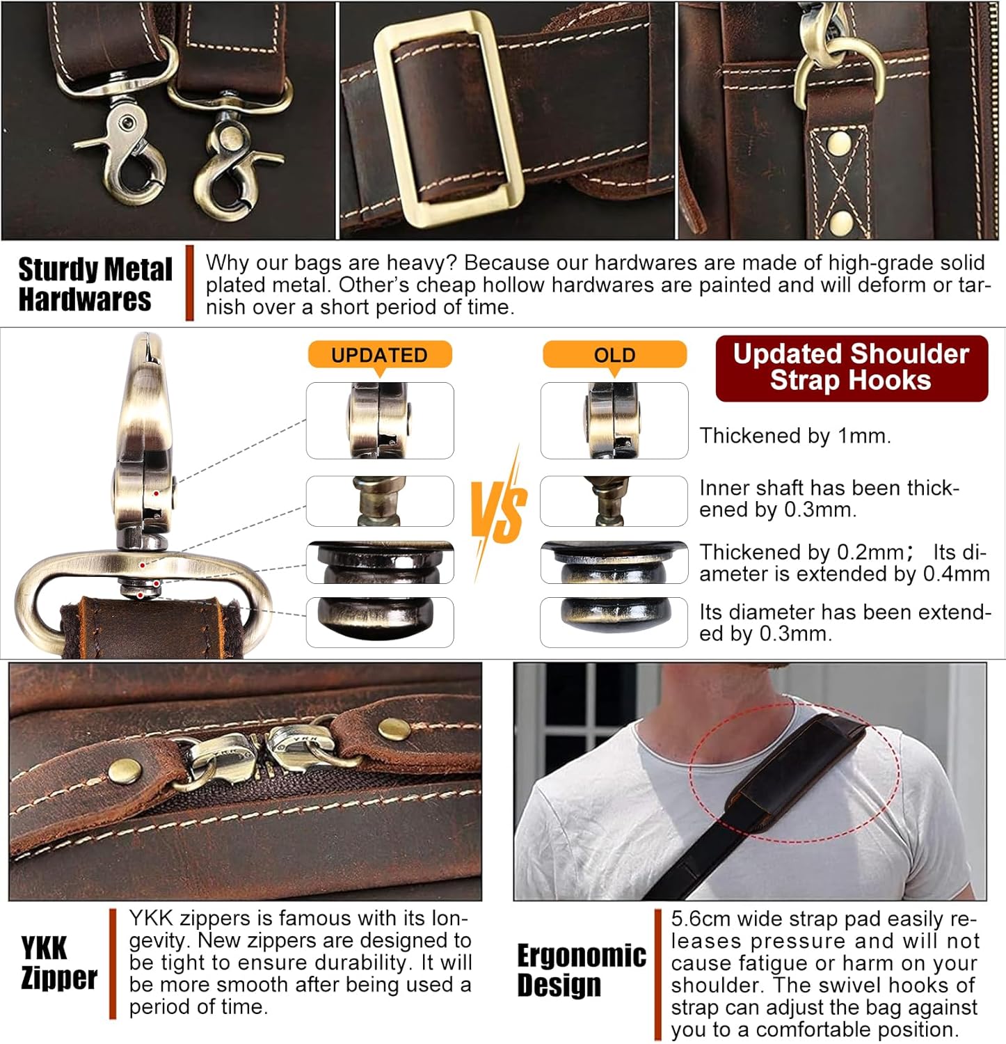 - 【Purchase with Confidence】One year quality commitment since you buy the men’s laptop briefcase, if you have any questions or concern, please reach us, we will help you to resolve any issues. This men’s leather work bag is a great present for birthday, anniversary, Valentine's day, father's day, Christmas