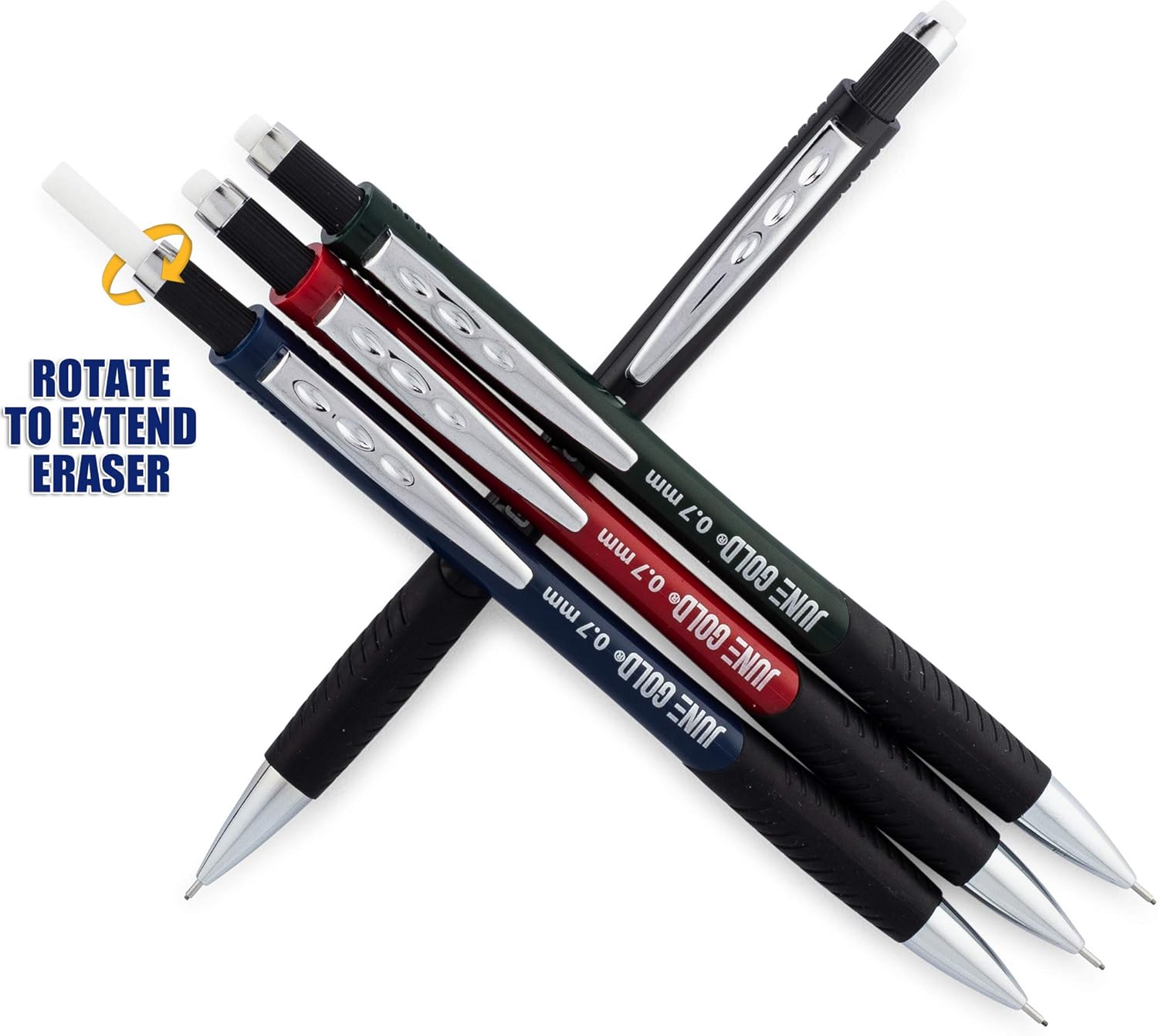 June Gold 8 Pack 0.7 mm HB #2 Mechanical Pencils, Extra Long Spin Eraser, 2 Lead Dispensers/w 220 Refills & 8 Refill Erasers, Break Resistant Lead, Soft Non-Slip Grip