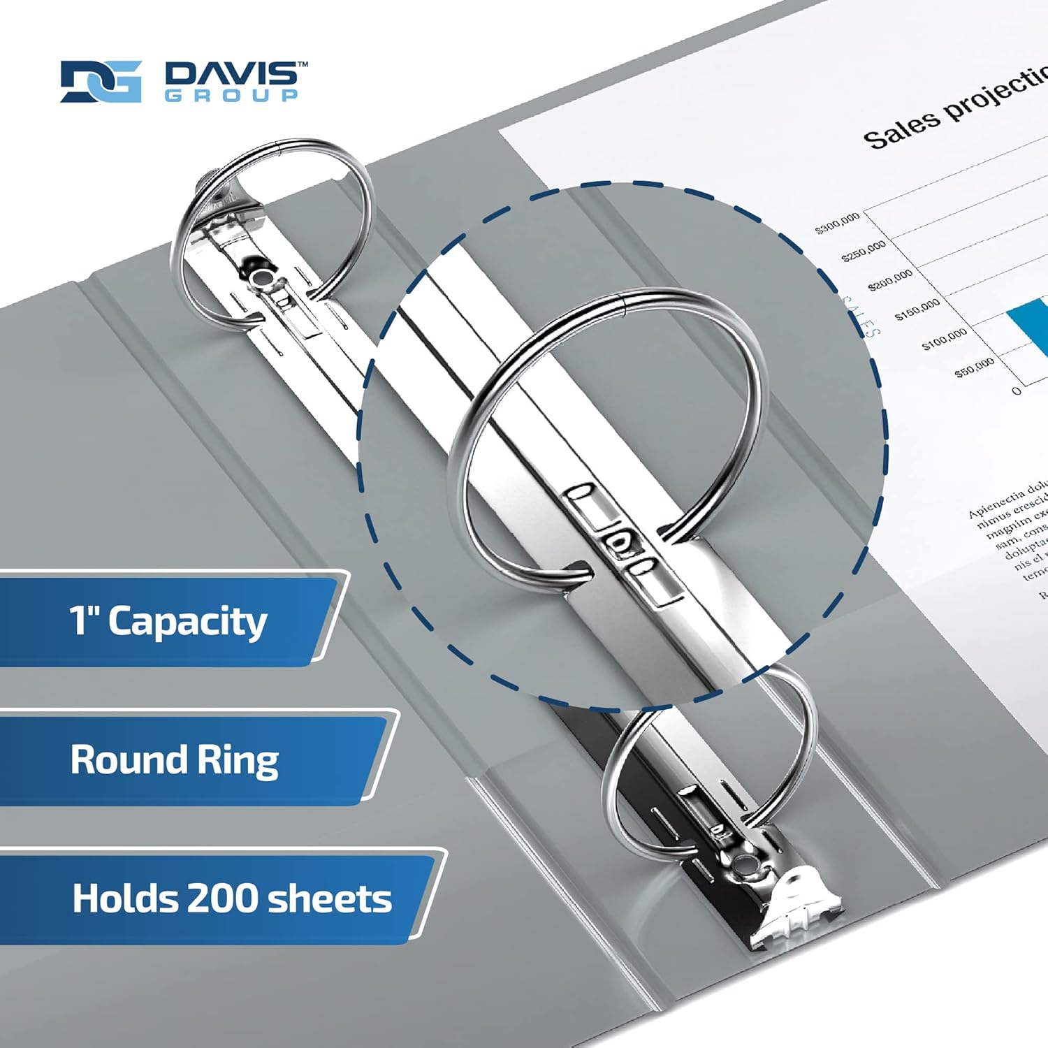 Easyview Premium 3-Ring Binders with Clear-View Covers and Round Rings, Binders for School or Office, 1 Inch, Pack of 6, Gray