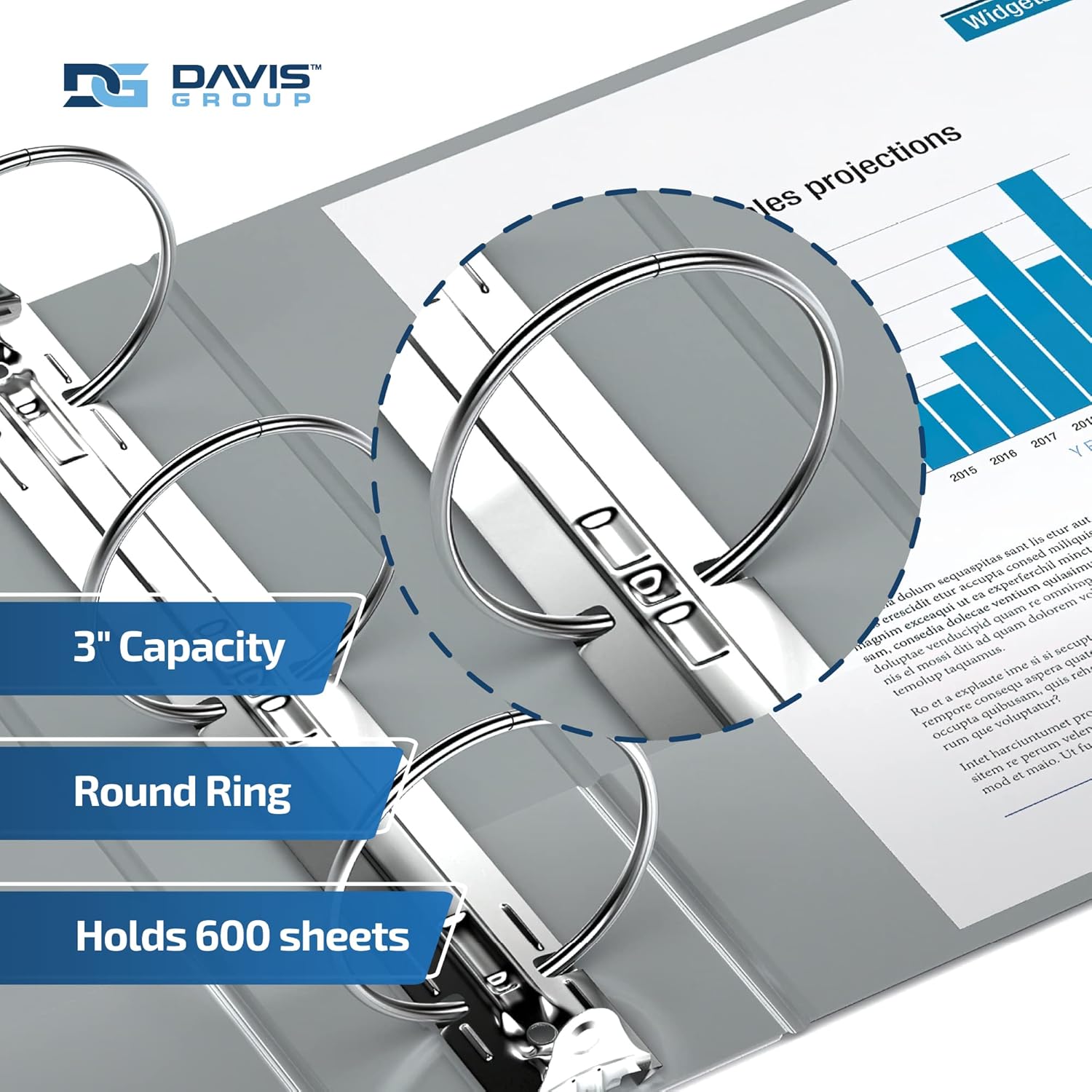 Easyview Premium 3-Ring Binders with Clear-View Covers and Round Rings, Binders for School or Office, 3 Inch, Pack of 6, Gray