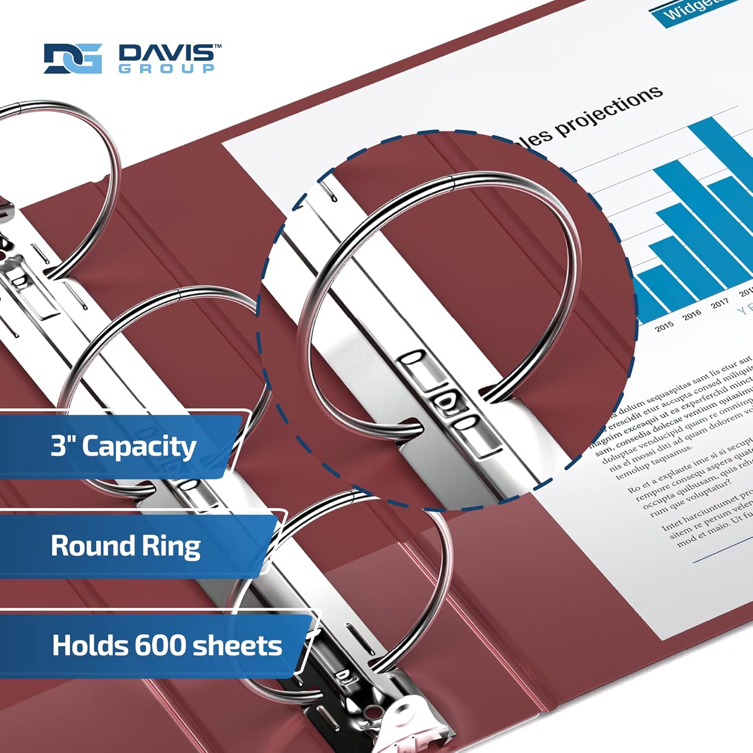 Easyview Premium 3-Ring Binders with Clear-View Covers and Round Rings, Binders for School or Office, 3 Inch, Pack of 6, Burgundy