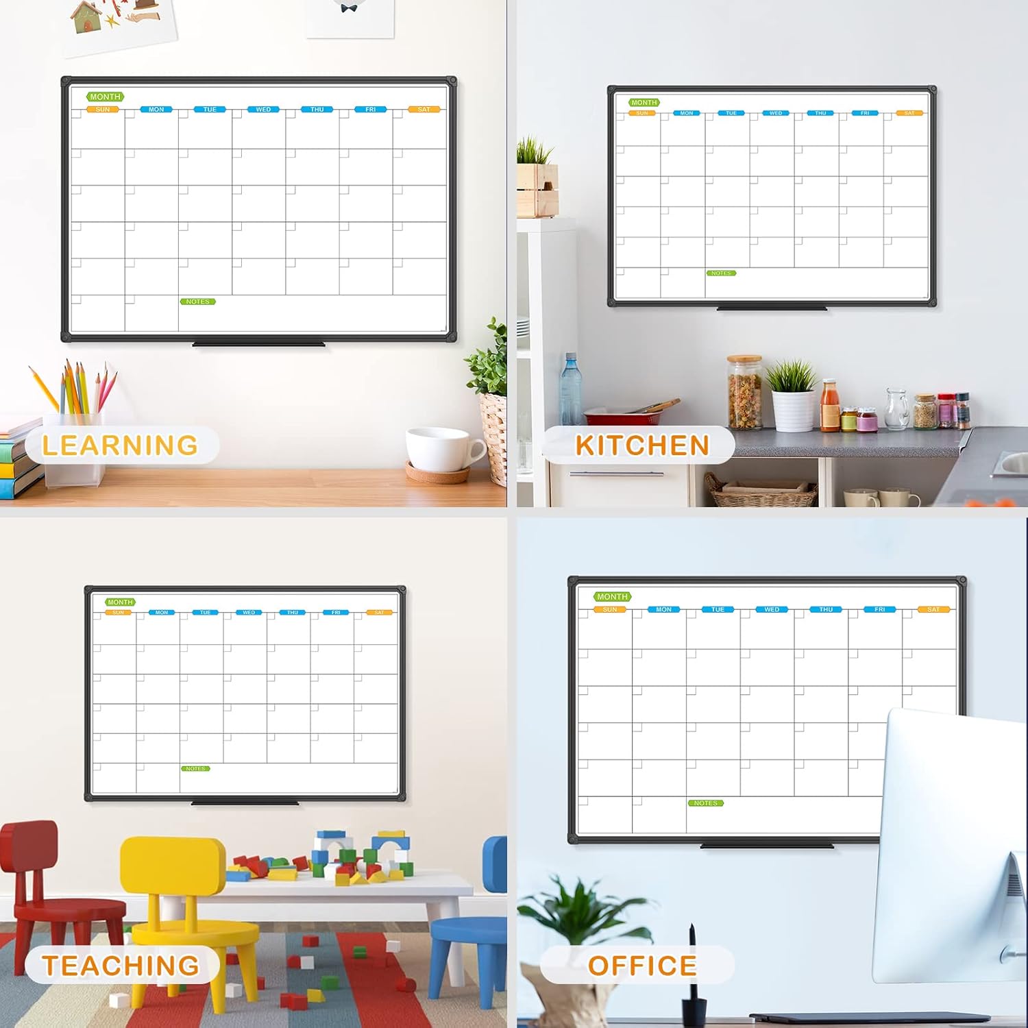 JILoffice Dry Erase Calendar Whiteboard - Magnetic White Board Calendar Monthly 36 X 24 Inch, Black Aluminum Frame Wall Mounted Board for Office Home and School