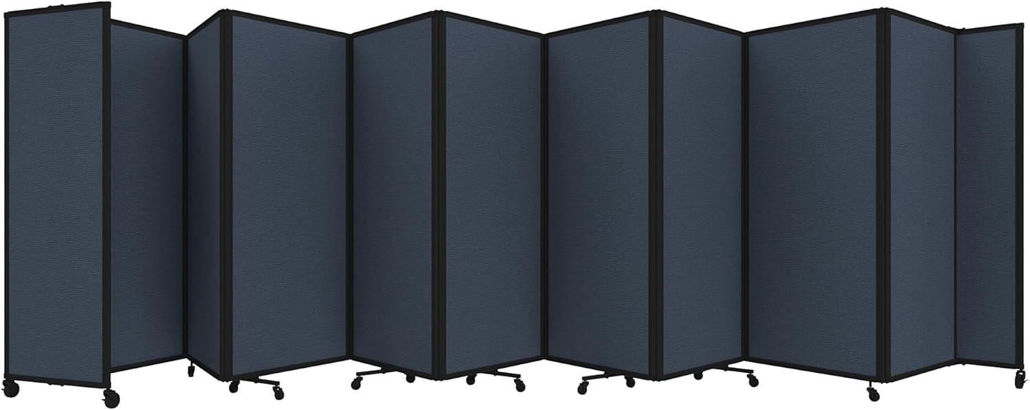 - THOUGHTFUL DESIGN: Made to roll around easily on wheels, this portable room separator also features locking casters to hold it in place. It comes with a trackable surface, sound-dampening fiberglass panels and a folding design for easy storage.