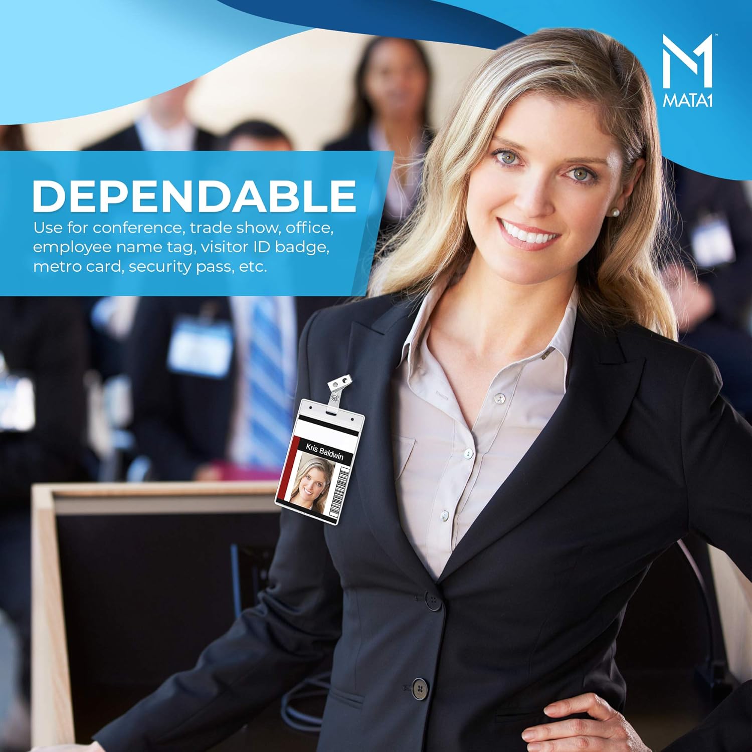 Mata1-USA Plastic Extra-Thick Vertical ID Card Holder (Clear, 3x4 Inch, 100 Pack), Large Size No Zipper Name Badge