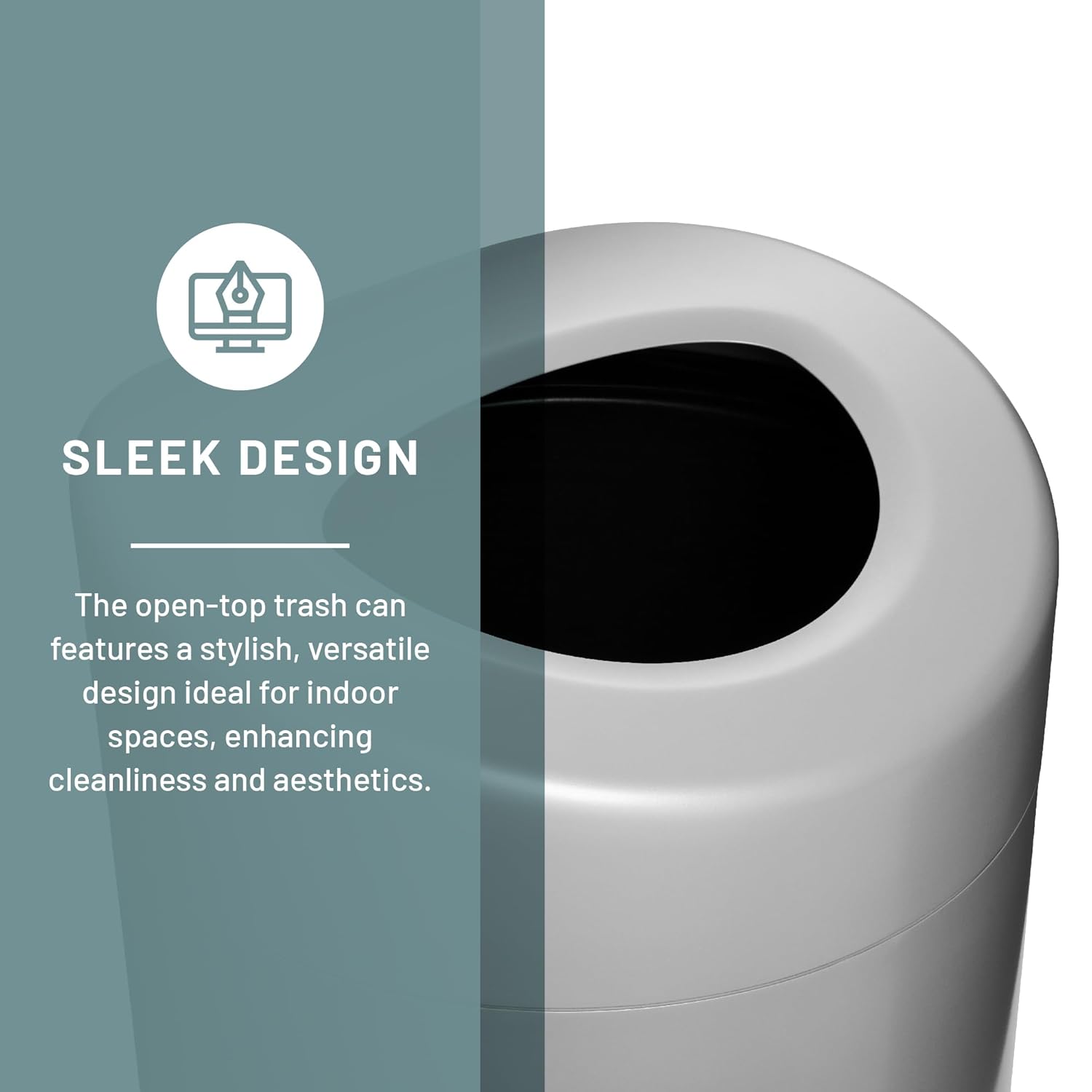 Safco Open Top Trash Can, 14 Gallon Stainless Steel Modern Garbage Can for Indoor Use, Silver