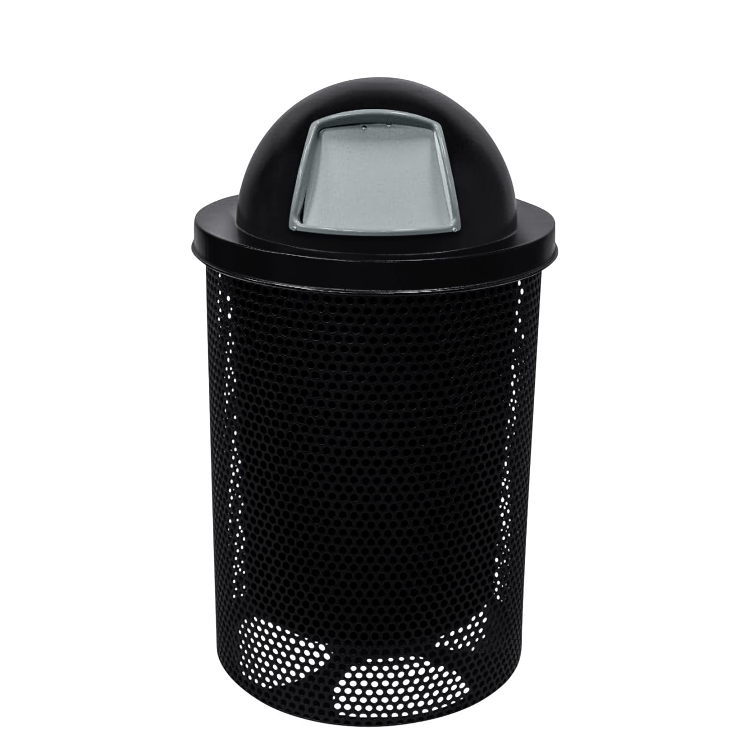 RDT-P-BLK Heavy Duty Round Trash Receptacle with Dome Top, Liner Included, 32 Gallon, Black, Made in America