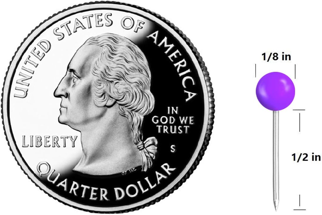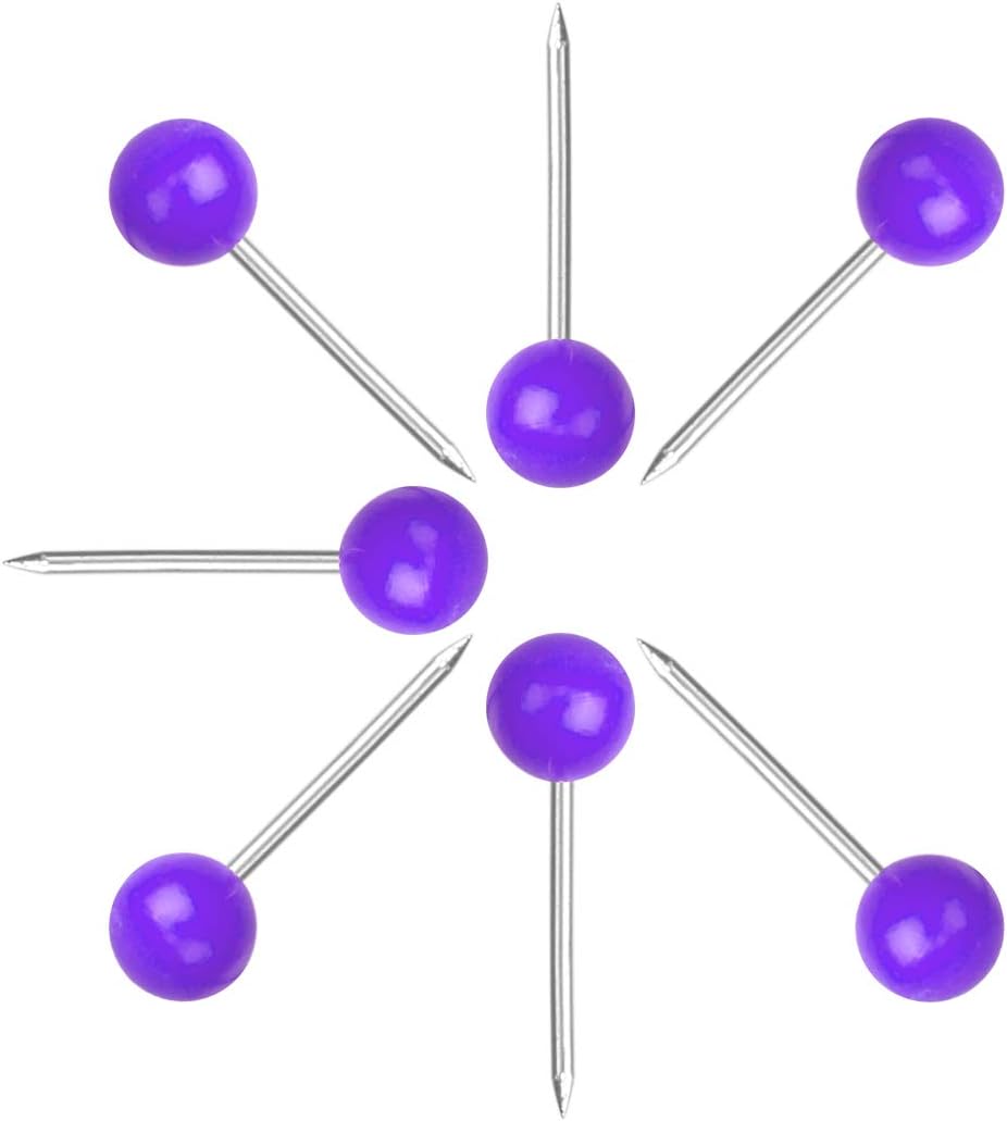Map Tacks 1/8-Inch Assorted Color Beads Head Map Marking Push Pins,500-count (Purple)