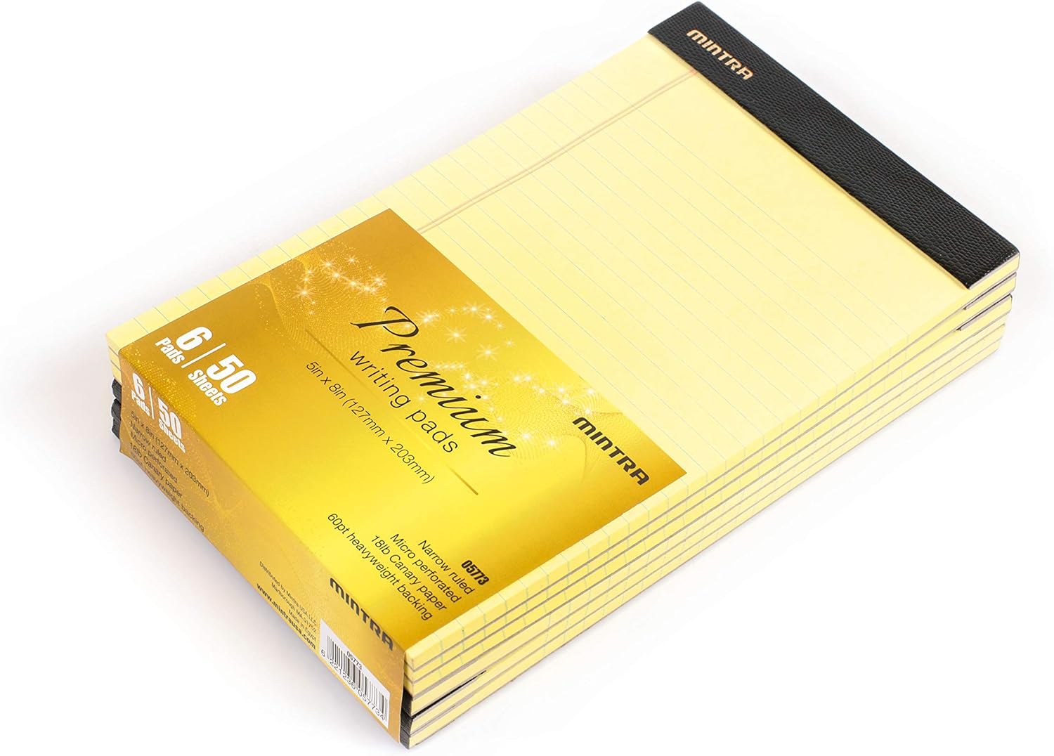 Mintra Office Legal Pads - ((PREMIUM CANARY 6pk, 5in x 8in, NARROW RULED))