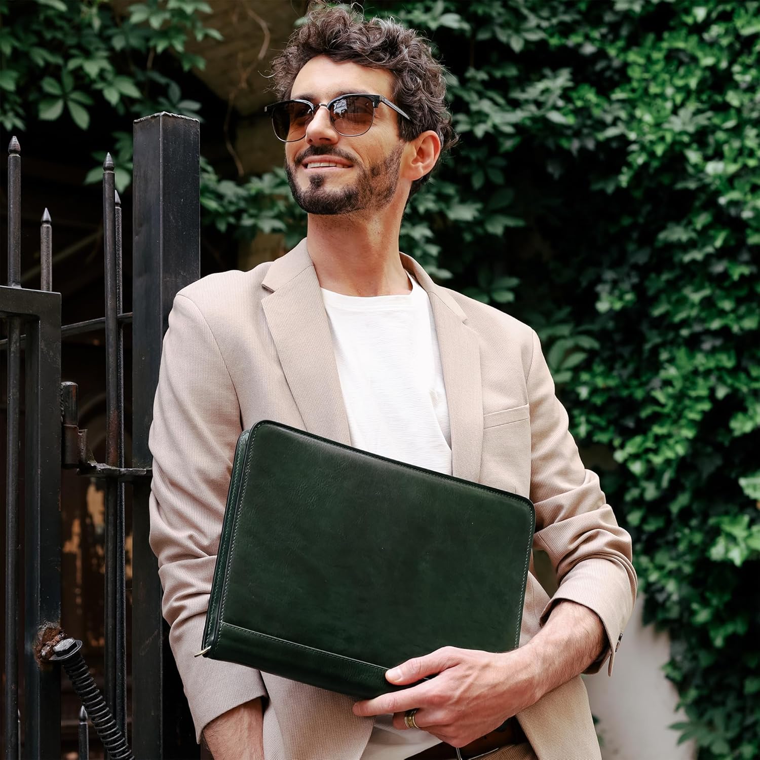 Time Resistance Leather Portfolio - A4 Document Folder - Italian Handcrafted Padfolio Organizer (Green) - Gift Box Included