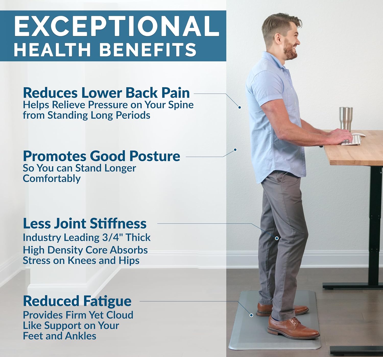 ComfiLife Anti Fatigue Floor Mat – 3/4 Inch Thick Kitchen Mats for Floor, Standing Desk Mat, Kitchen Rug – Comfort at Home, Office – Durable – Stain Resistant – Non-Slip Bottom (20" x 32", Gray)