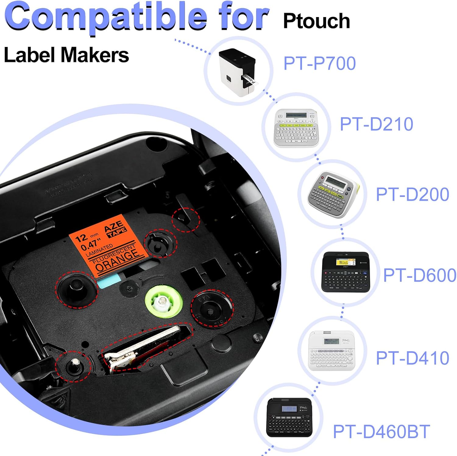 - Package Included: 2 pack KCMYTONER compatible for Ptouch TZe-B31 TZ-B31 TZeB31 TZB31 laminated label maker tape; color: black text on fluorescent orange tape; size: 12mm (1/2 inch) x 5m (16.4 feet)