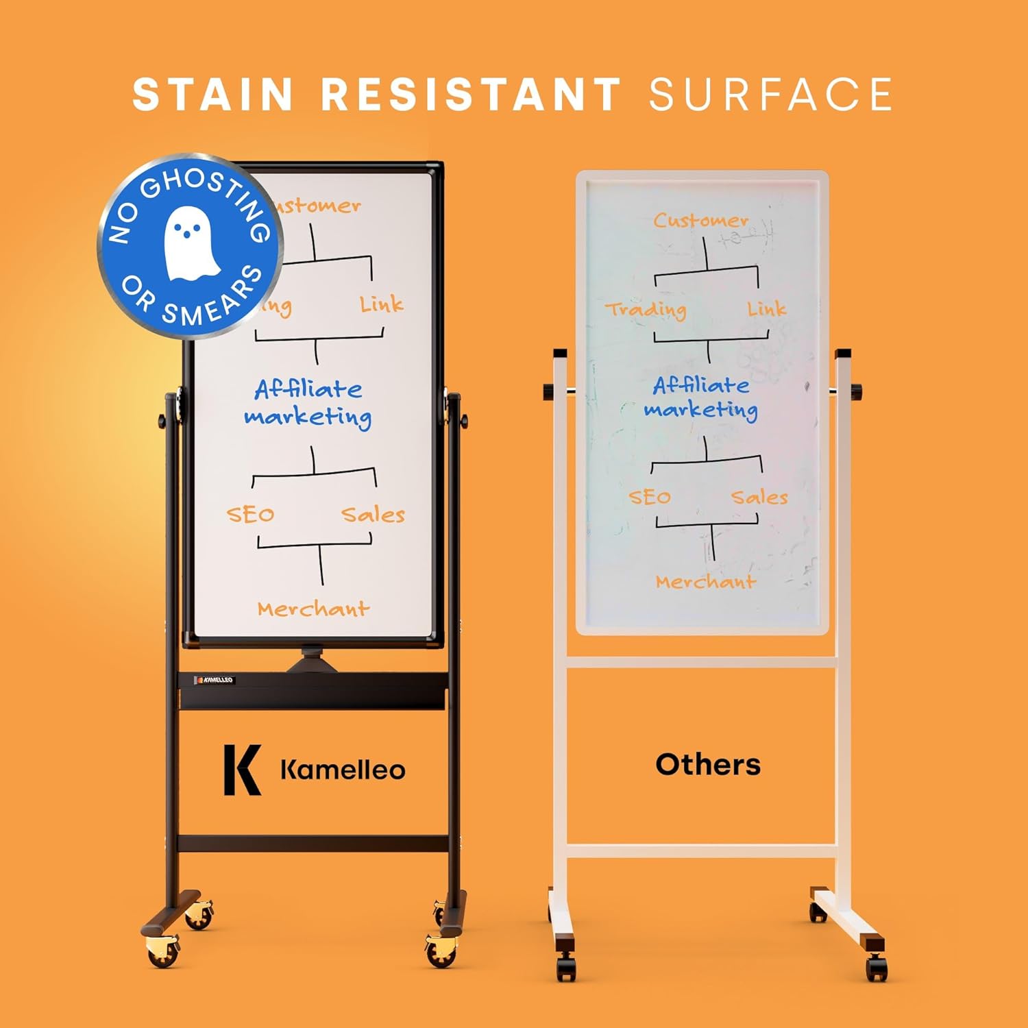 - Built to Last: Whether used in the office, classroom, or home, Kamelleo’s mobile dry-erase whiteboards are designed to hold up over years of frequent use. While other whiteboards will stain or break due to poor construction, our dry-erase whiteboards are known for their durability and reliability when you need it most!
