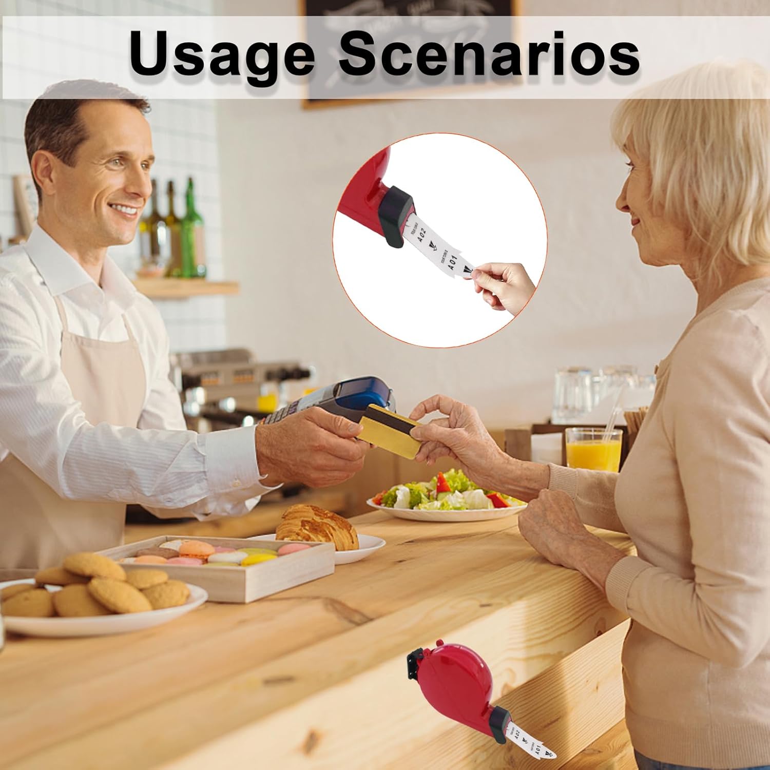 - Take a ticket dispenser with tickets roll