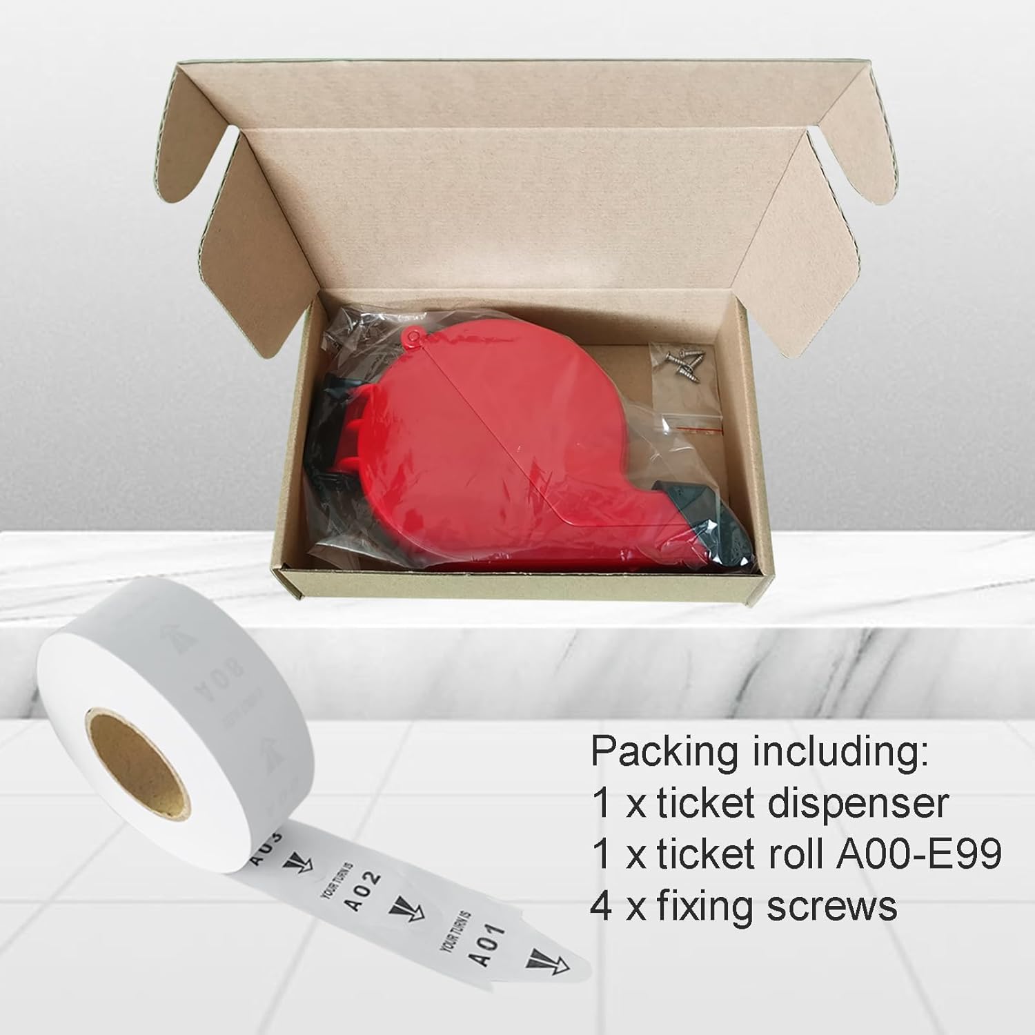 Ticket Dispenser Take A Number System with 1 Roll 2 Digit Paper 4 Groups Number (A01-E99, red)