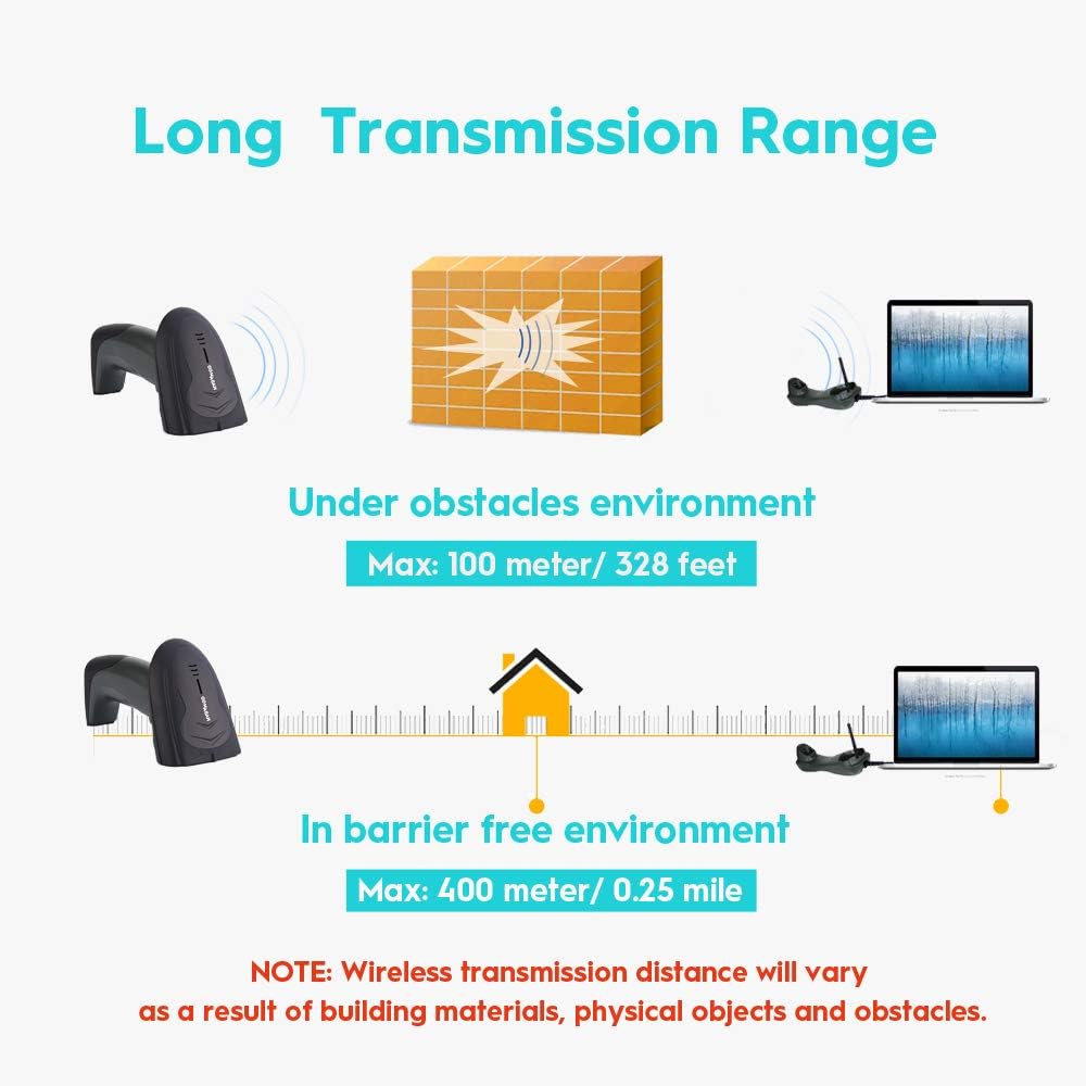 NADAMOO Wireless Barcode Scanner with Cradle, 2D Cordless Bar Code Reader 400m Transmission Distance CMOS Imager Read 1D, 2D, QR Code, Data Matrix, PDF417 for Windows Mac Linux