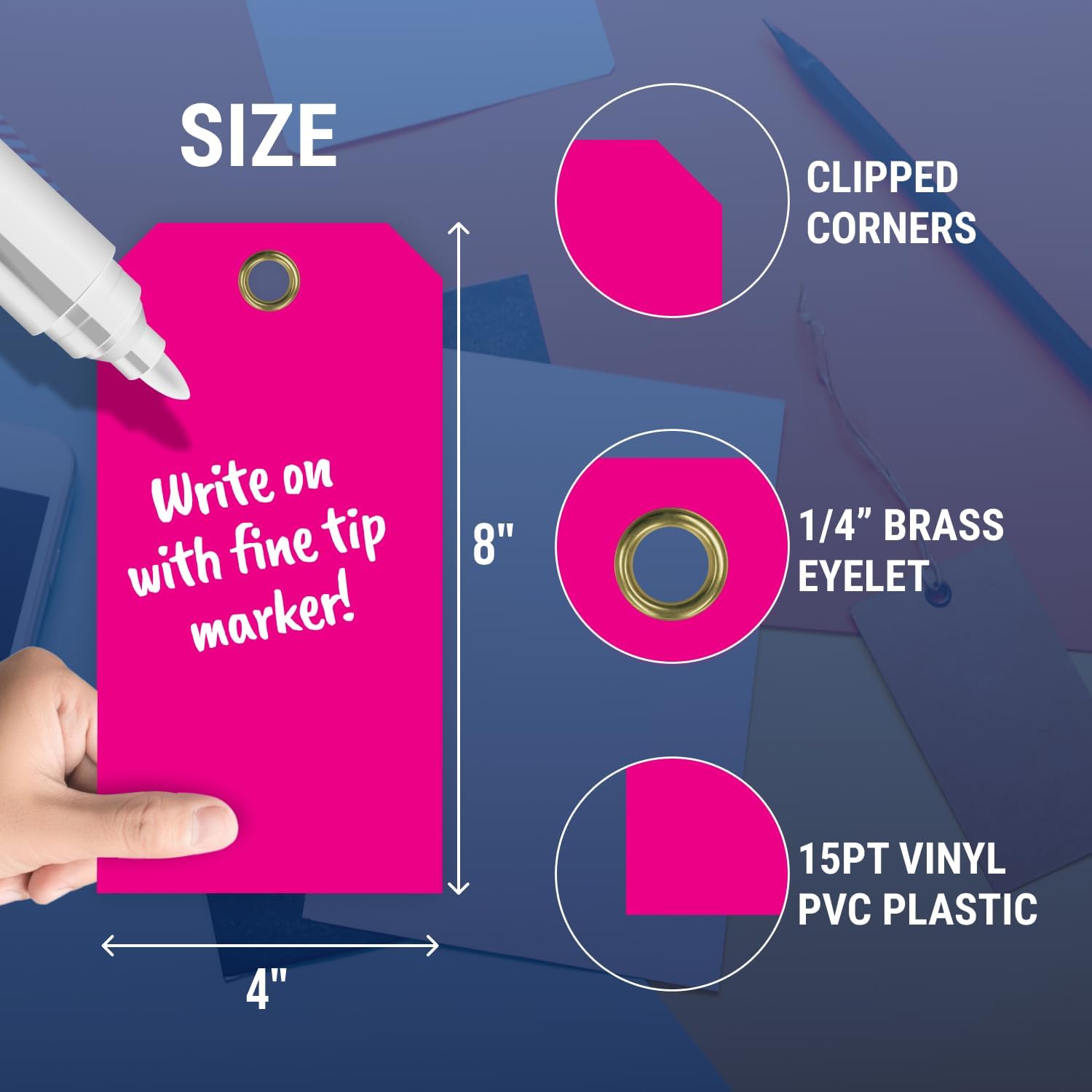 - Material : 15pt Vinyl PVC Plastic Tag