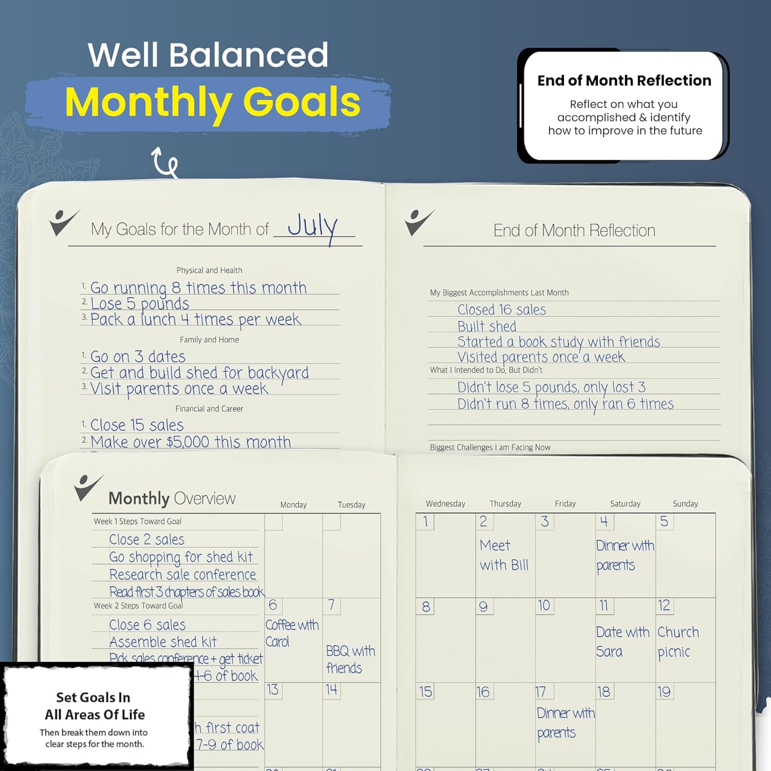 - BALANCED LIFE ORGANIZATION – Built-in sections guide you through setting long-term and monthly goals, weekly priorities, and end-of-month reflections. Great for professionals, students, business owners and entrepreneurs looking for better time management and balance.