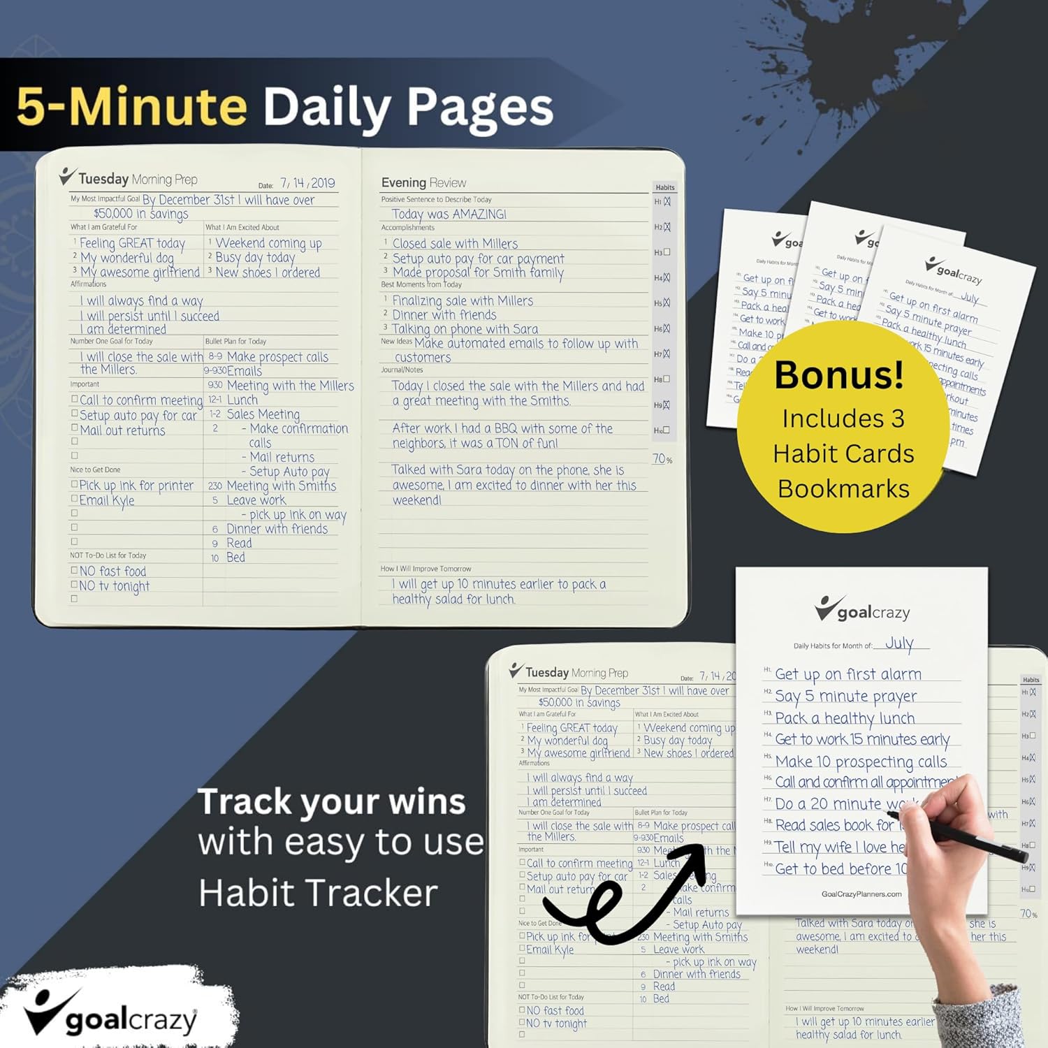 - BONUS HABIT CARDS FOR CONSISTENCY & FOCUS – Includes 3 detachable habit card bookmarks to track daily routines and build lasting habits. Use this undated planner as your productivity organizer, academic planner, or work diary to stay focused and consistent every day.