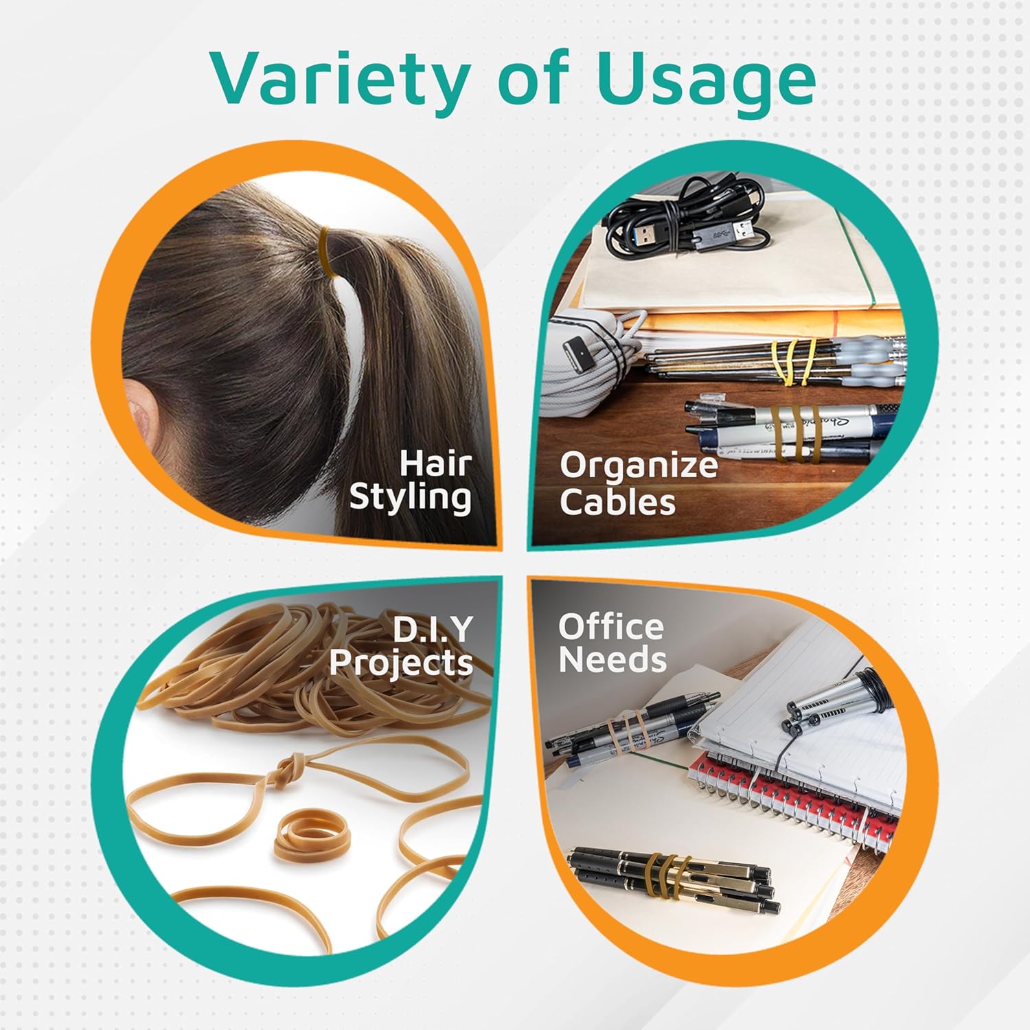 - Soft stretch: These rubber bands have a soft stretch making them comfortable to use and handle. Perfect for everyday use: Ideal for organizing papers and sealing bags at home or in the office.