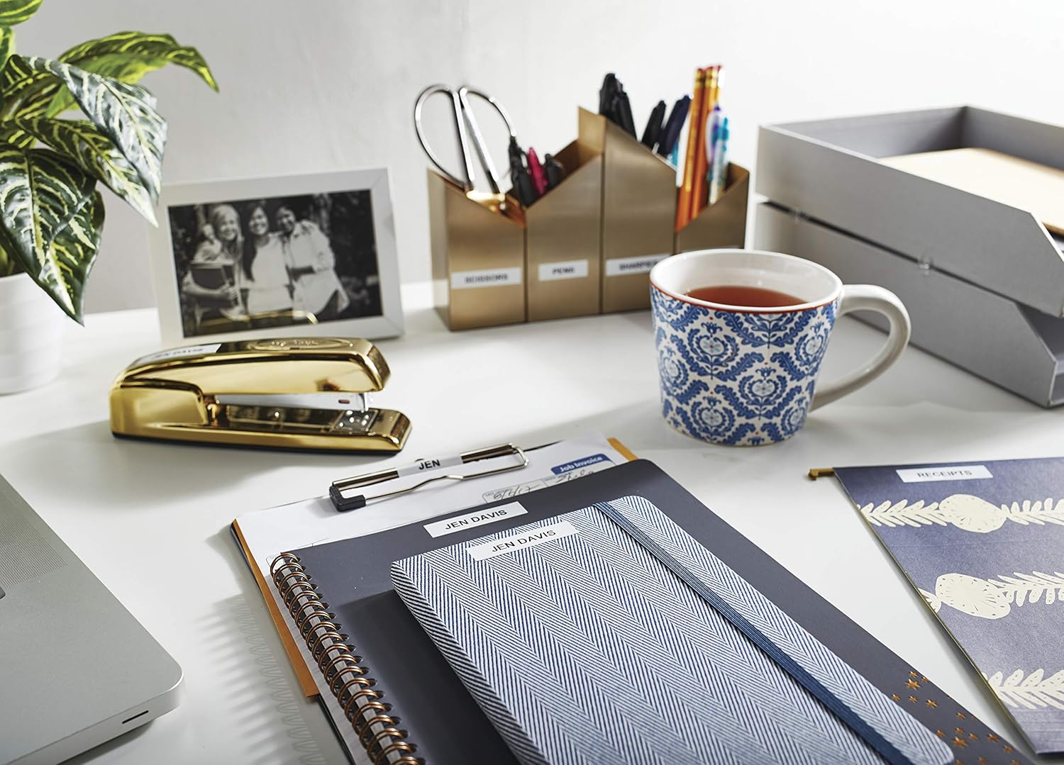 - Paper labels that adhere easily to most common surfaces such as paper and glass