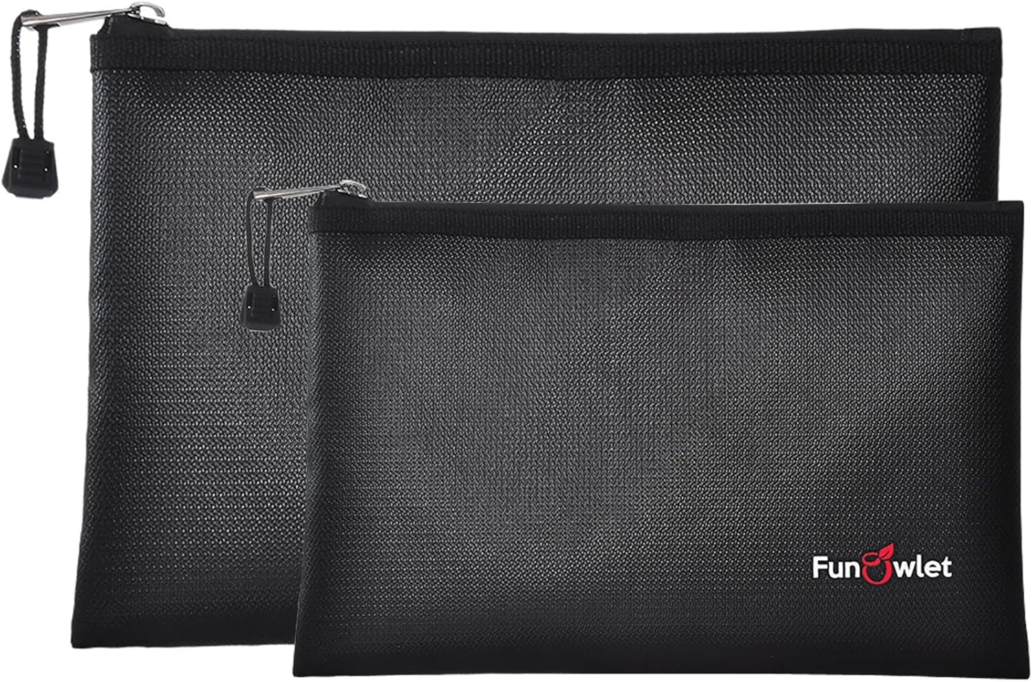 Fireproof Safe Money Document Bags - 2 Pack 13.4" x 9.8" and 10.6" x 6.7" Waterproof Zipper Bag, Fire & Water Resistant Storage Organizer Pouch for A4 A5 Documents Holder,File,Cash,Passport,Tablet