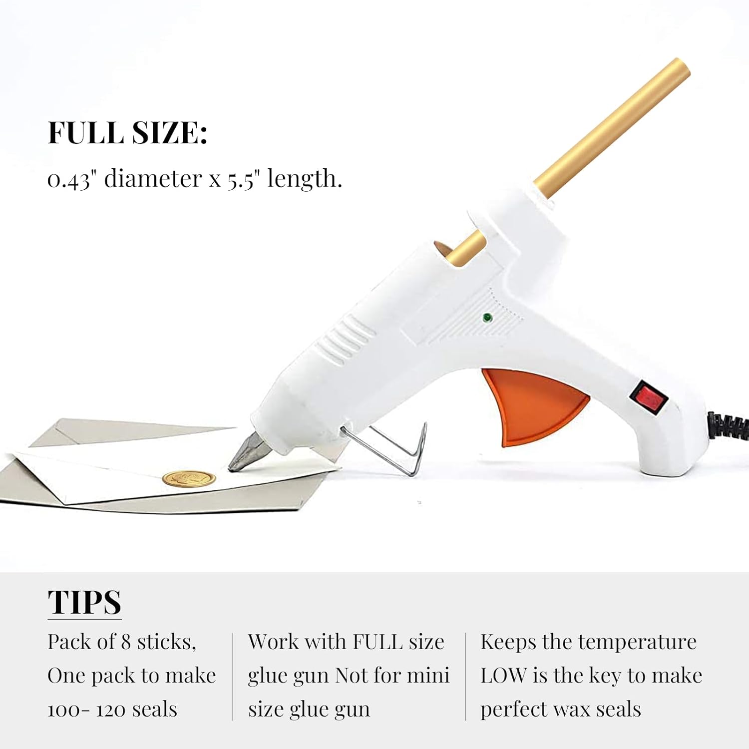 - Package Includes - Pack of 8 sticks. Each stick can approx. make 12-15 seals. One pack to make 100- 120 seals. Size: 0.43” diameter x 5.5” length.