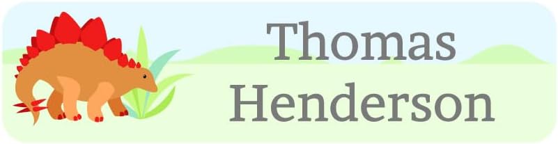 Name Bubbles - Custom Small Rectangle Name Labels for Kids (64 Labels) - Personalized Waterproof Name Stickers for Daycare, Lunch Boxes, Water Bottles, Shoes, School Supplies, & Camp (Dinosaur)